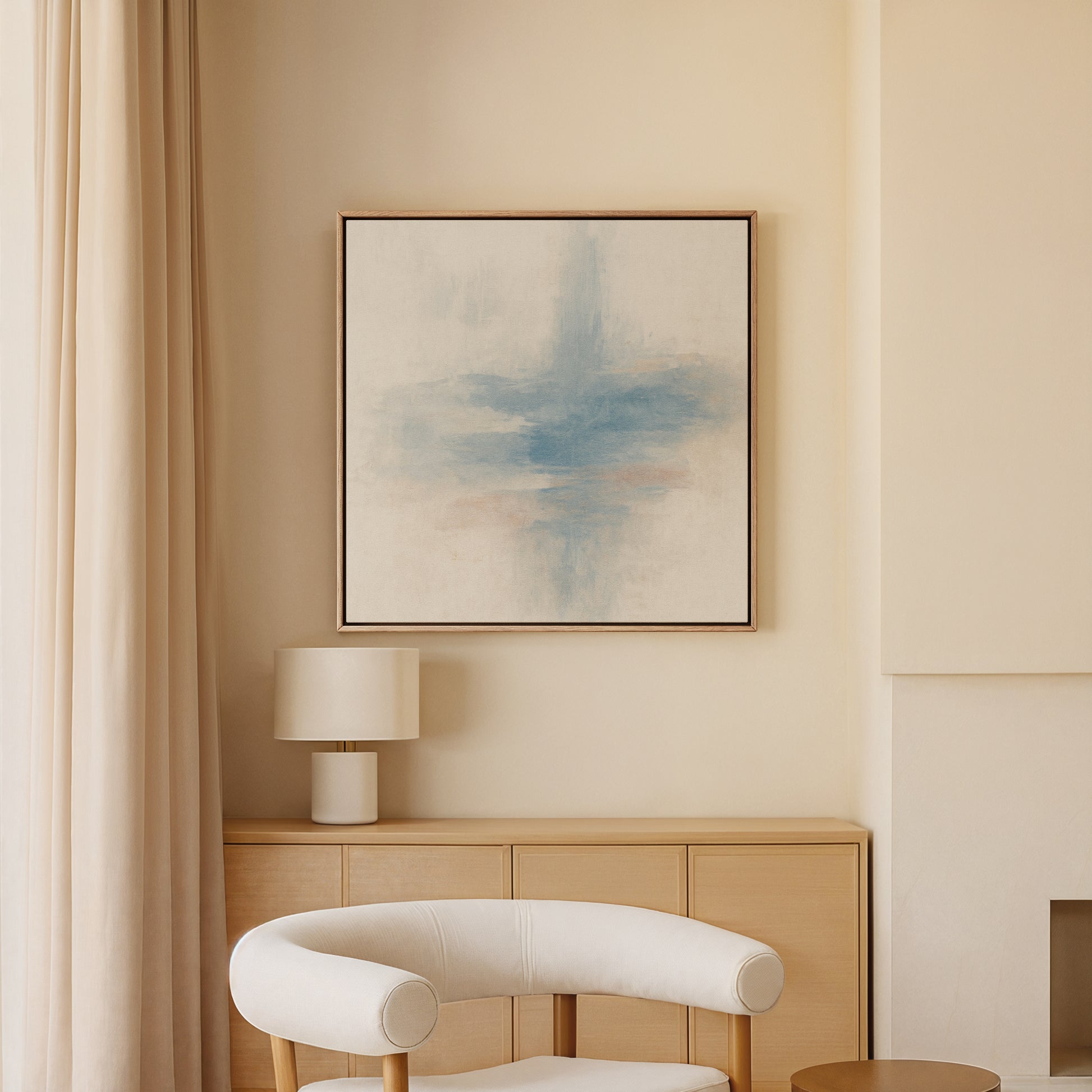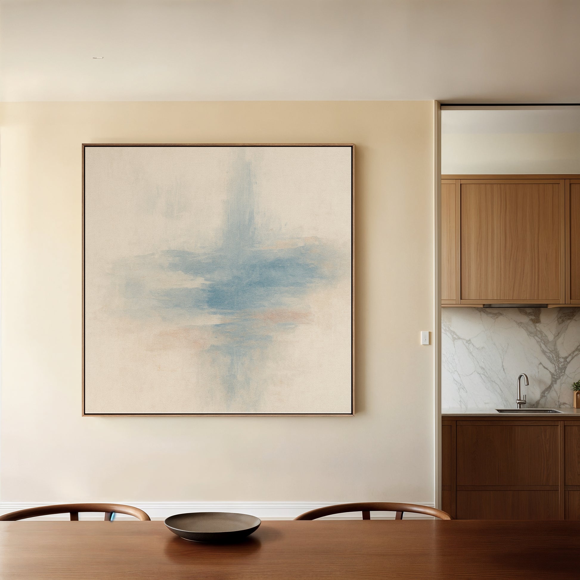 Softly atmospheric, Horizon of Quiet brings an immediate sense of peace and openness to any room. Misty layers of blue and sand drift across the canvas like distant clouds or reflections on still water, inviting a moment of pause. Its gentle transitions of tone and texture make it perfect for bright, minimalist interiors—adding calm without losing depth. This piece fills a space not with color, but with air—a quiet horizon that expands the feeling of light and serenity in the home.