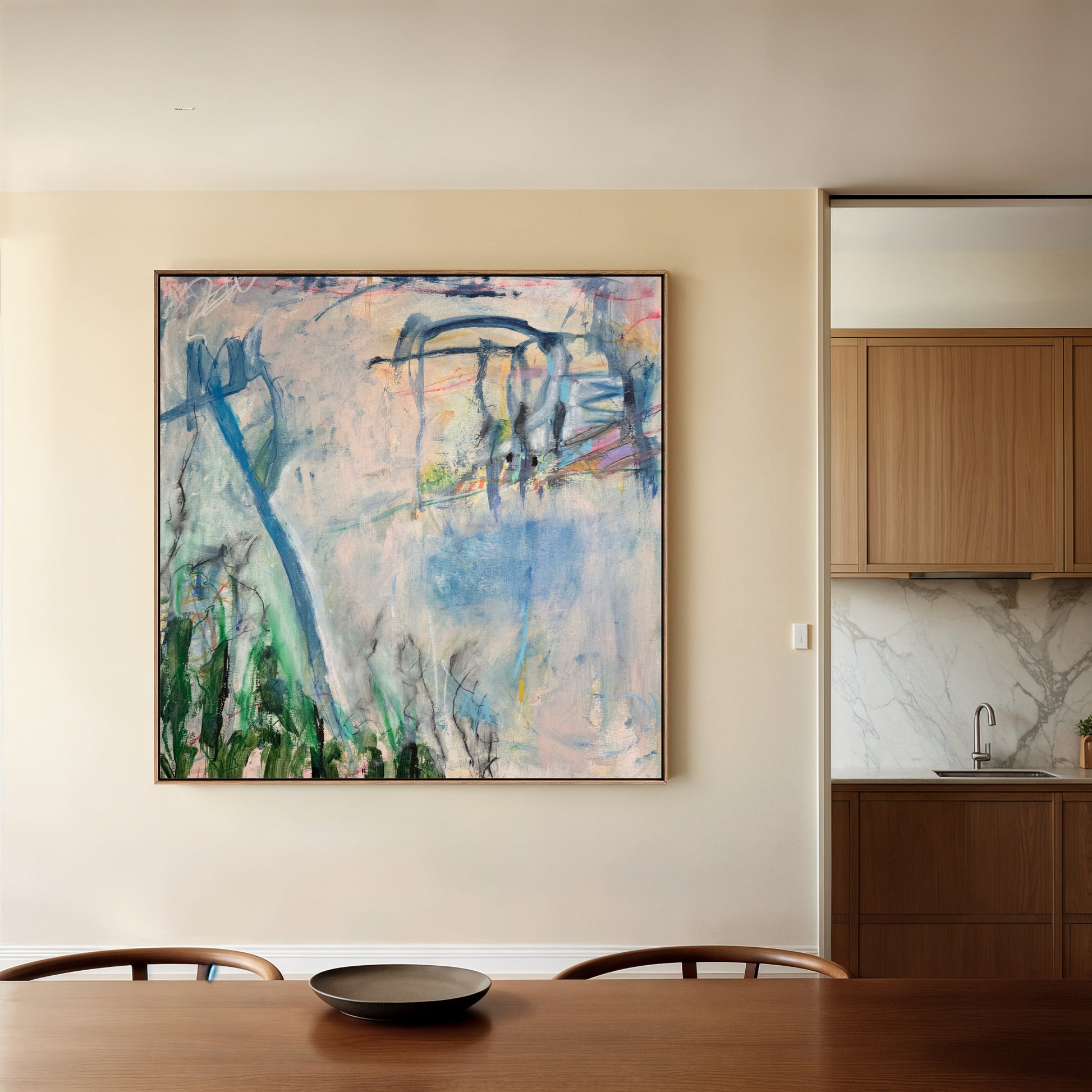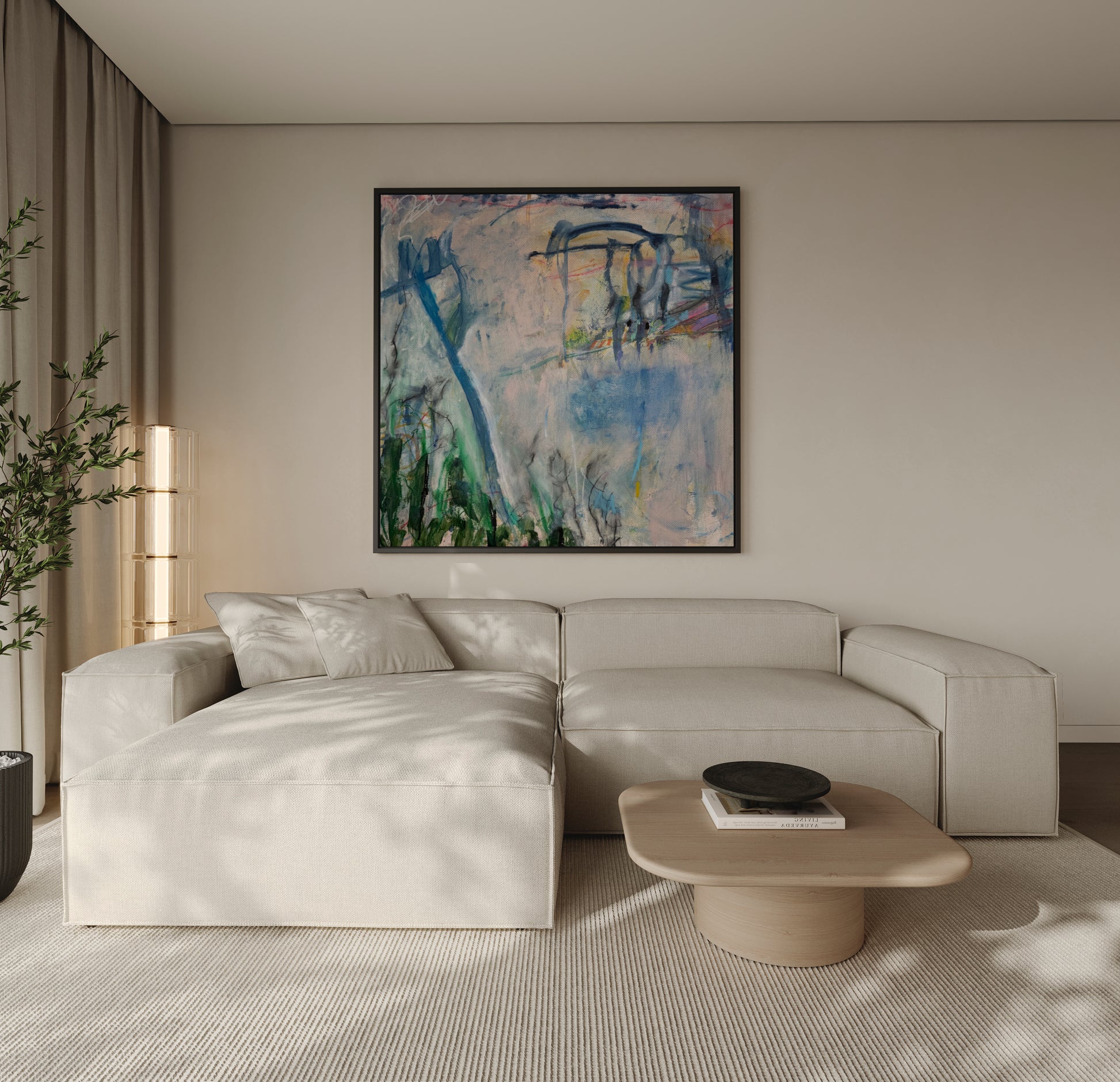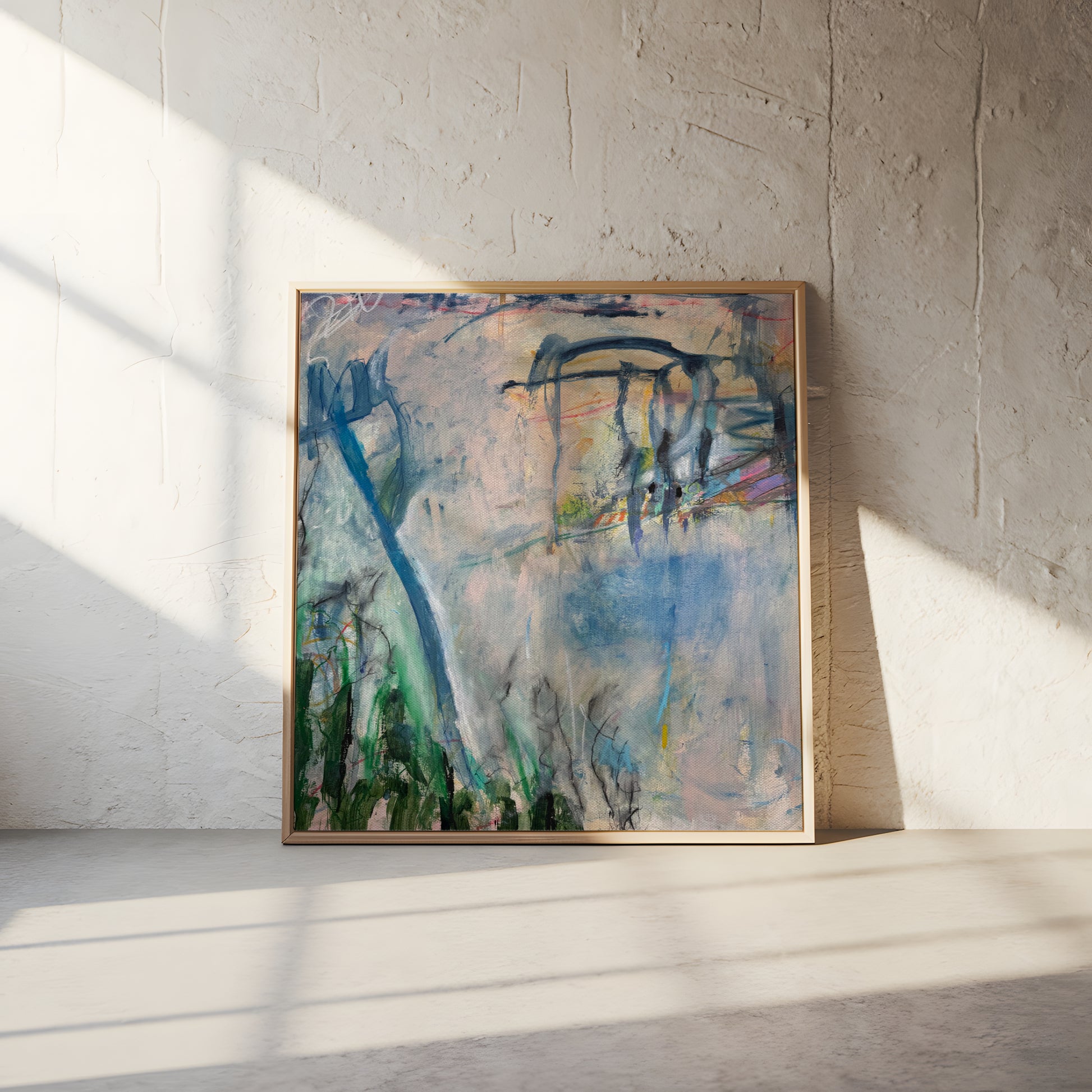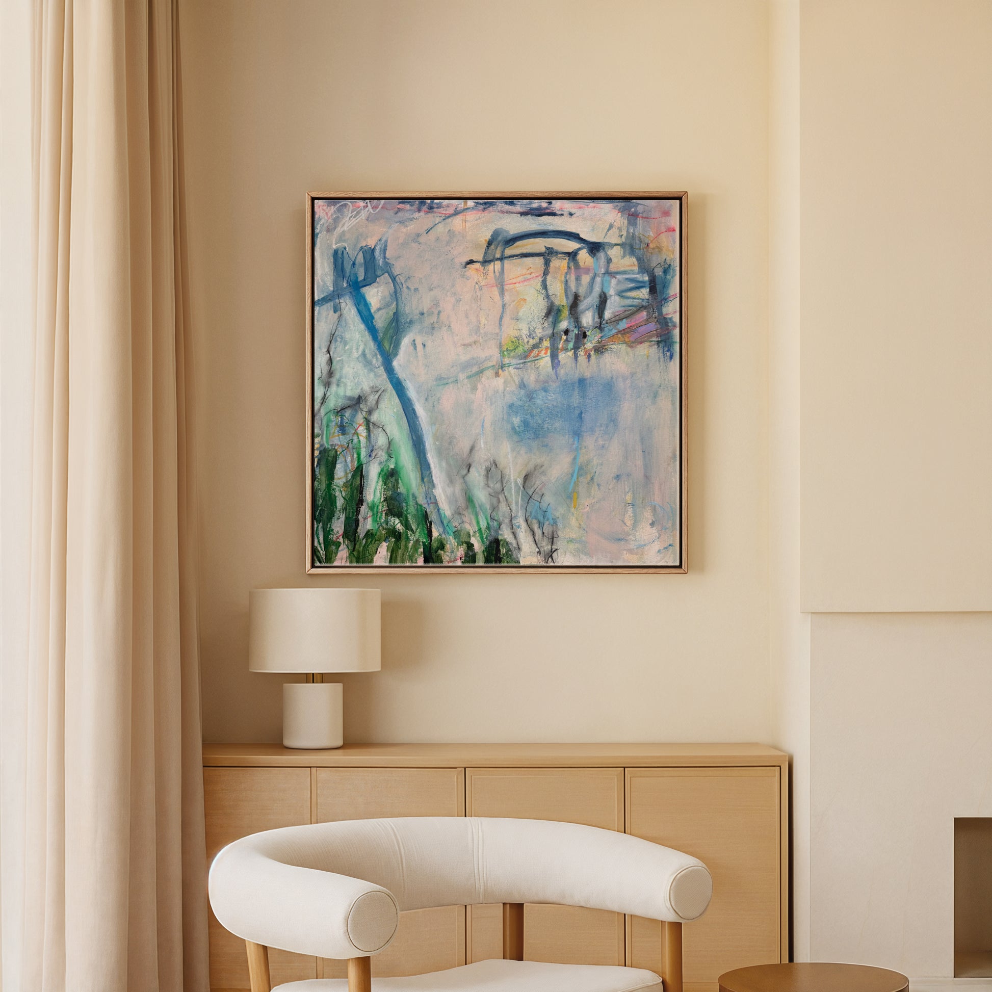 This piece is printed on a thick, archival-grade polycotton canvas, hand-stretched over solid wood stretcher bars and finished in a wood floater frame.