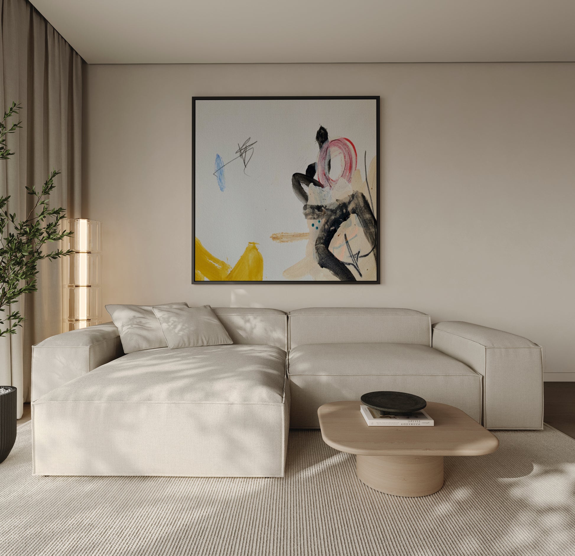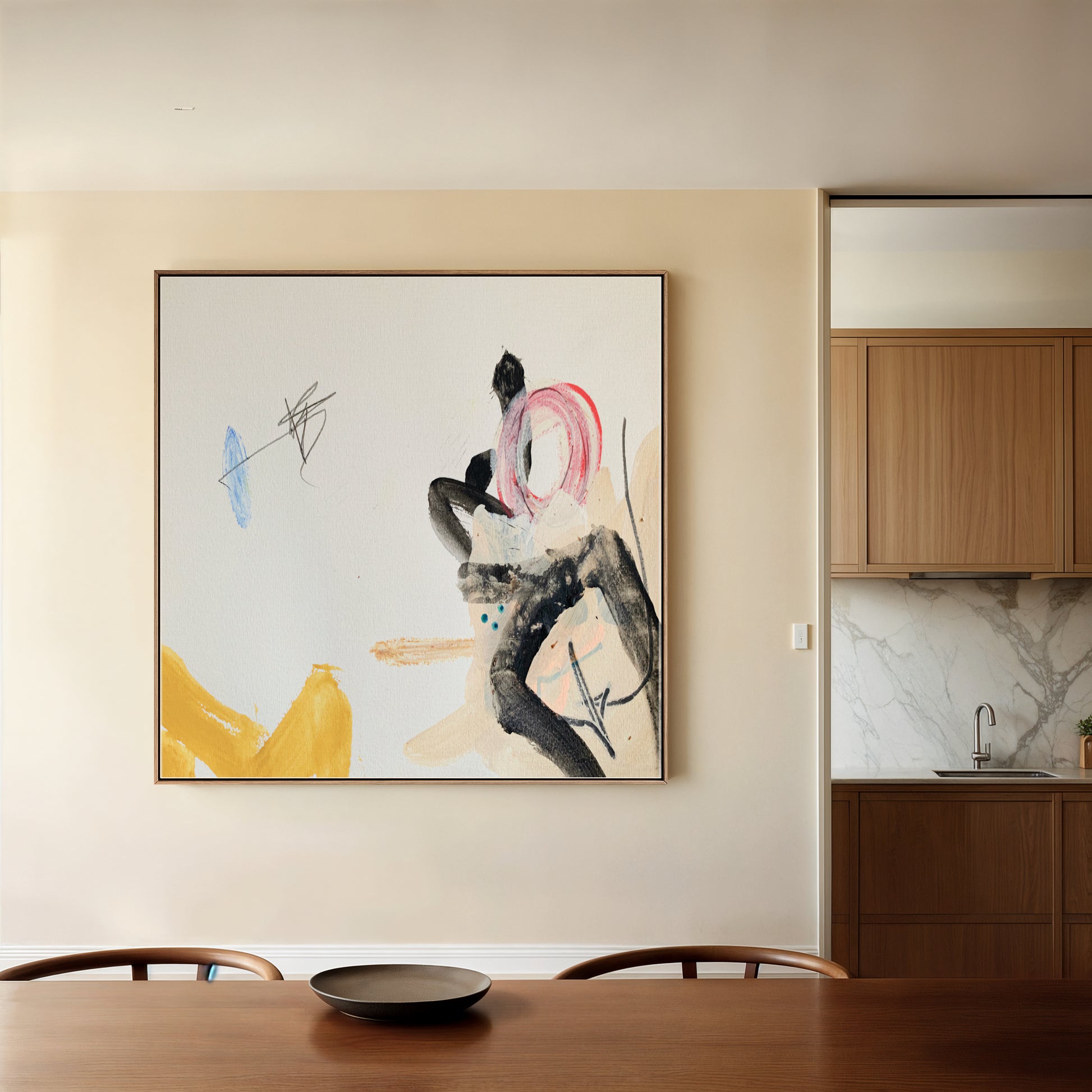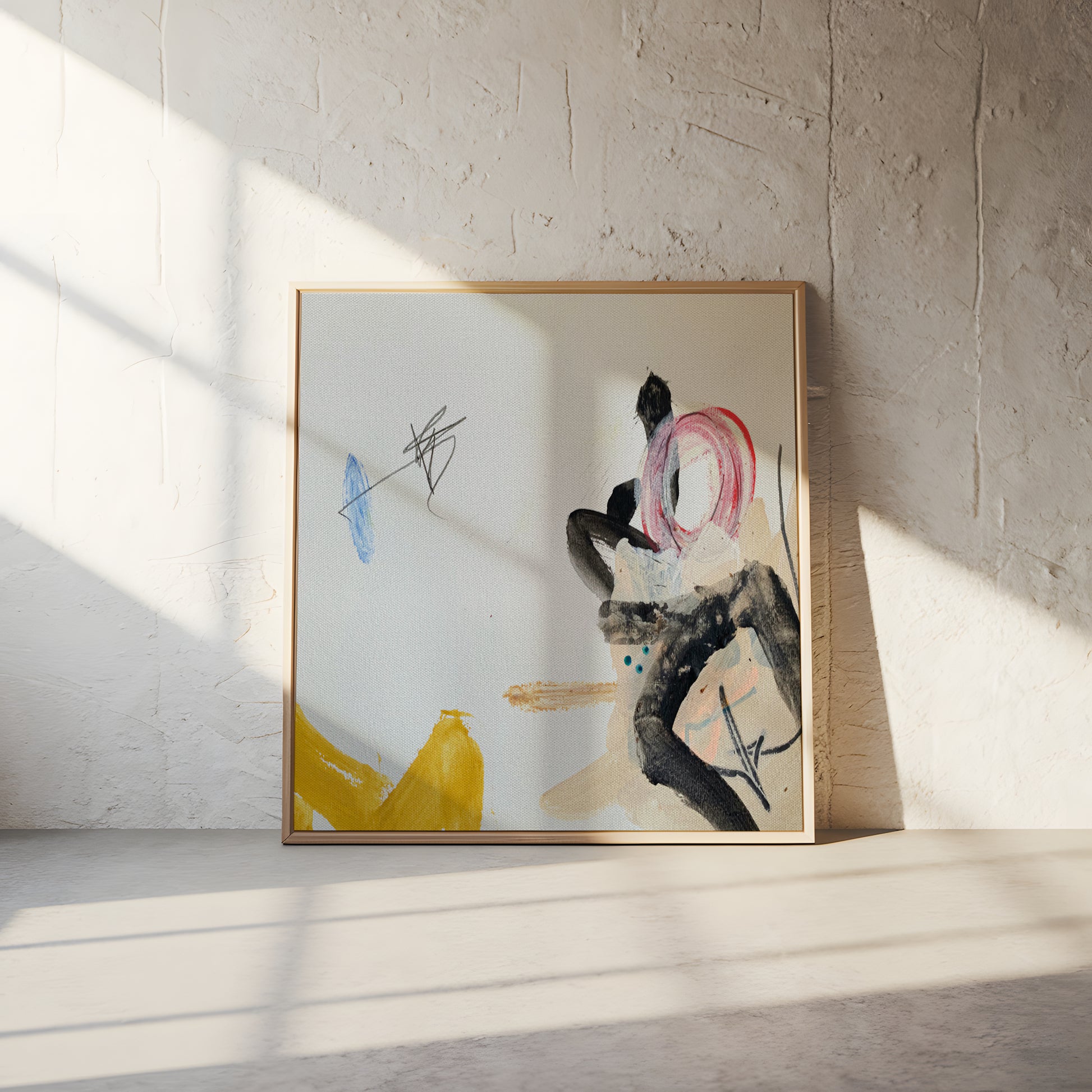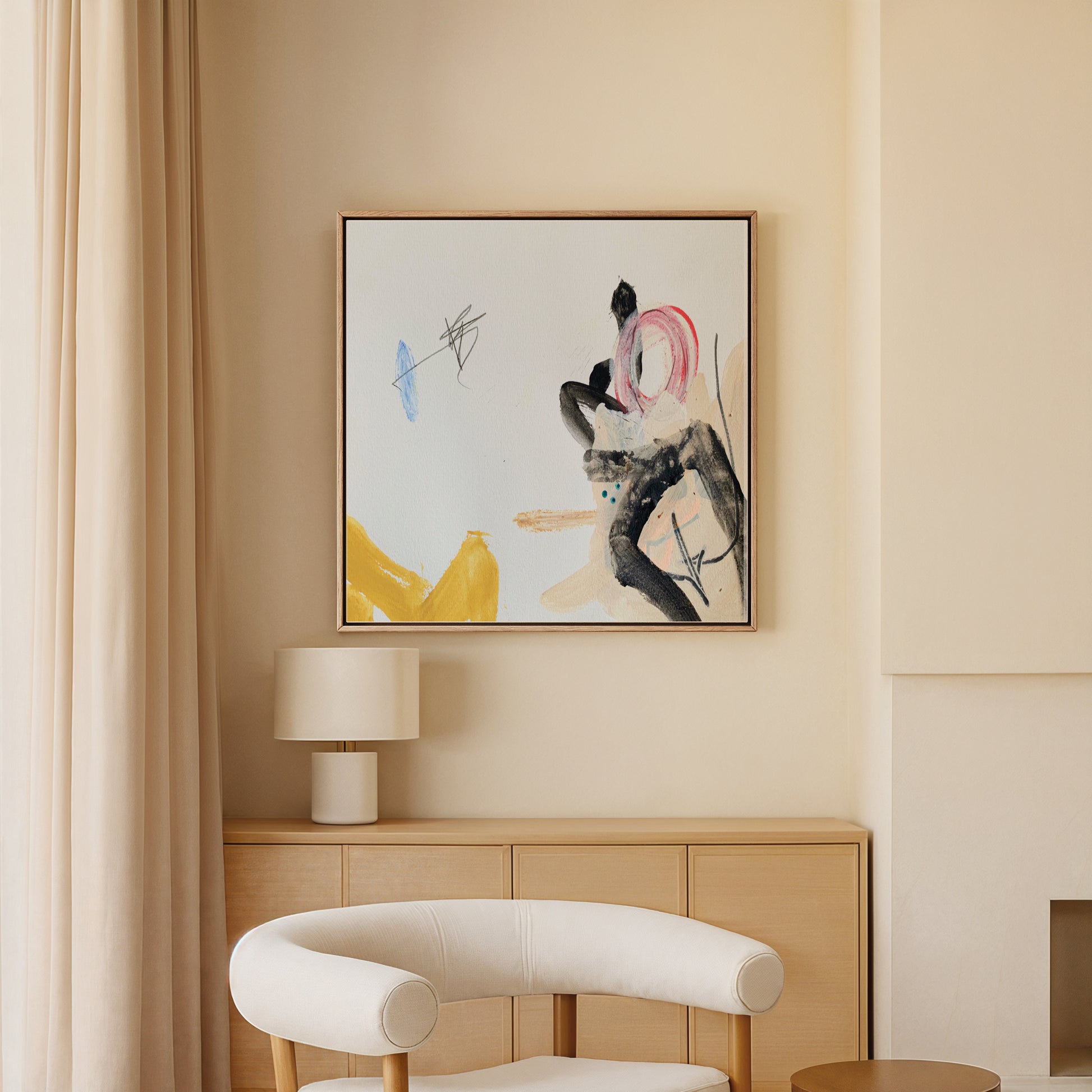 This piece is printed on a thick, archival-grade polycotton canvas, hand-stretched over solid wood stretcher bars and finished in a wood floater frame.