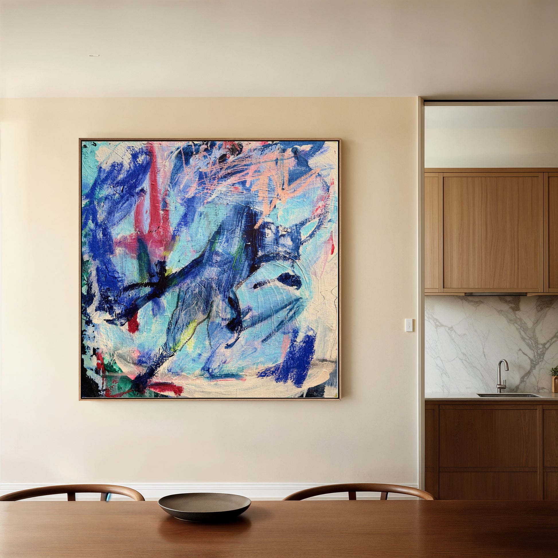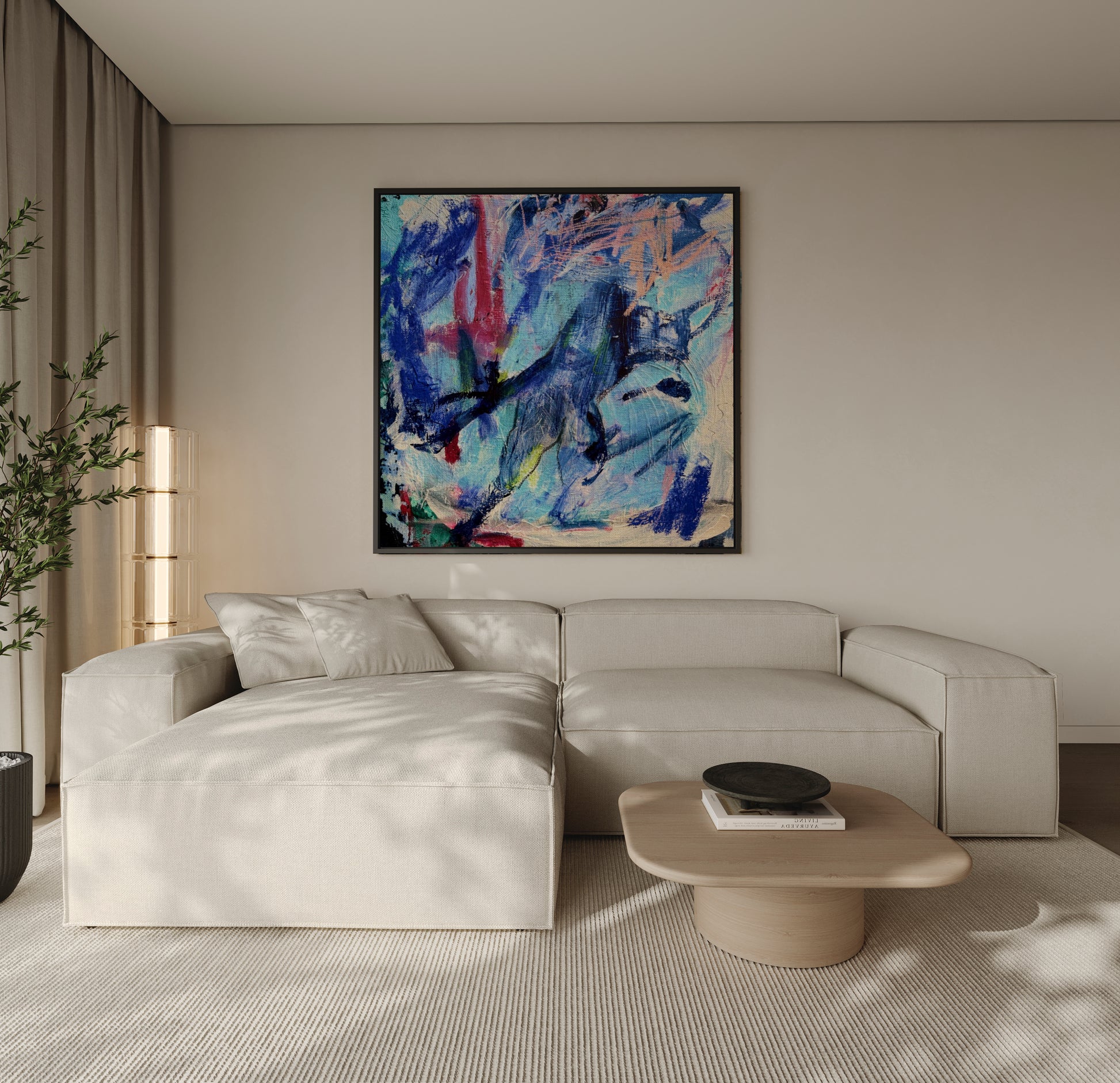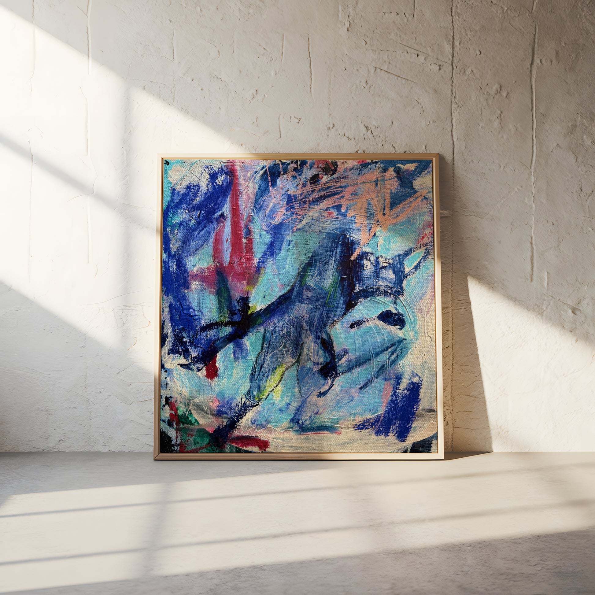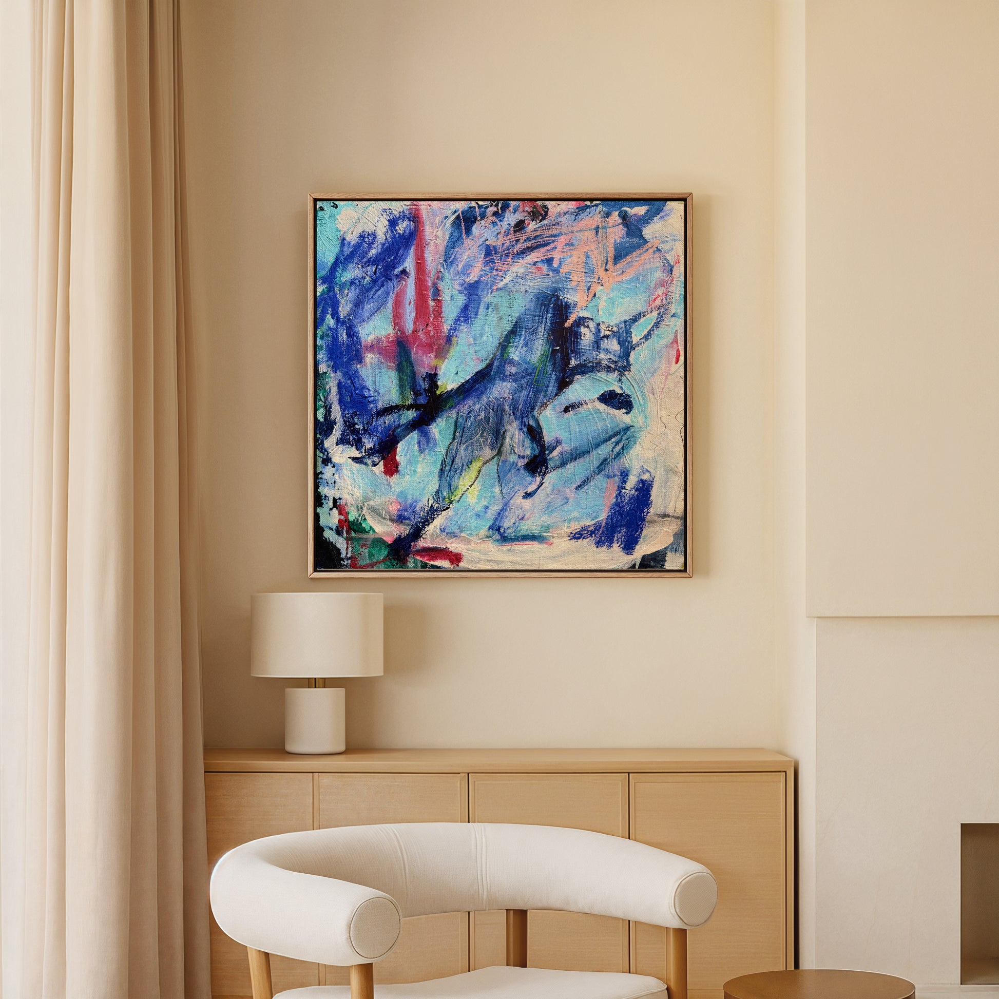 This piece is printed on a thick, archival-grade polycotton canvas, hand-stretched over solid wood stretcher bars and finished in a wood floater frame.