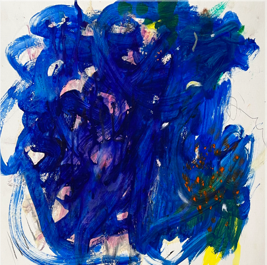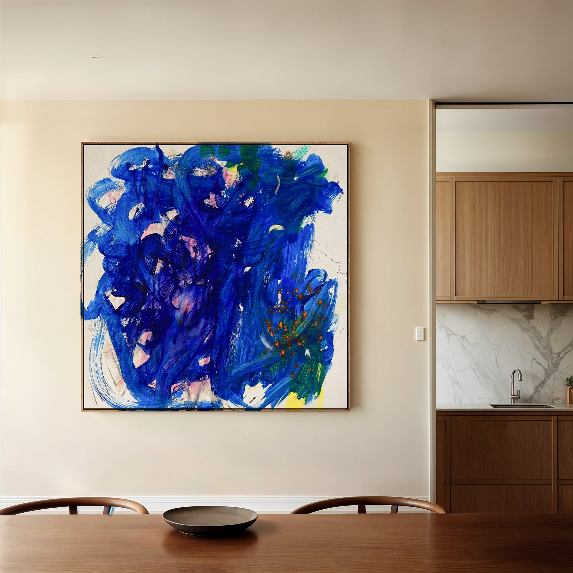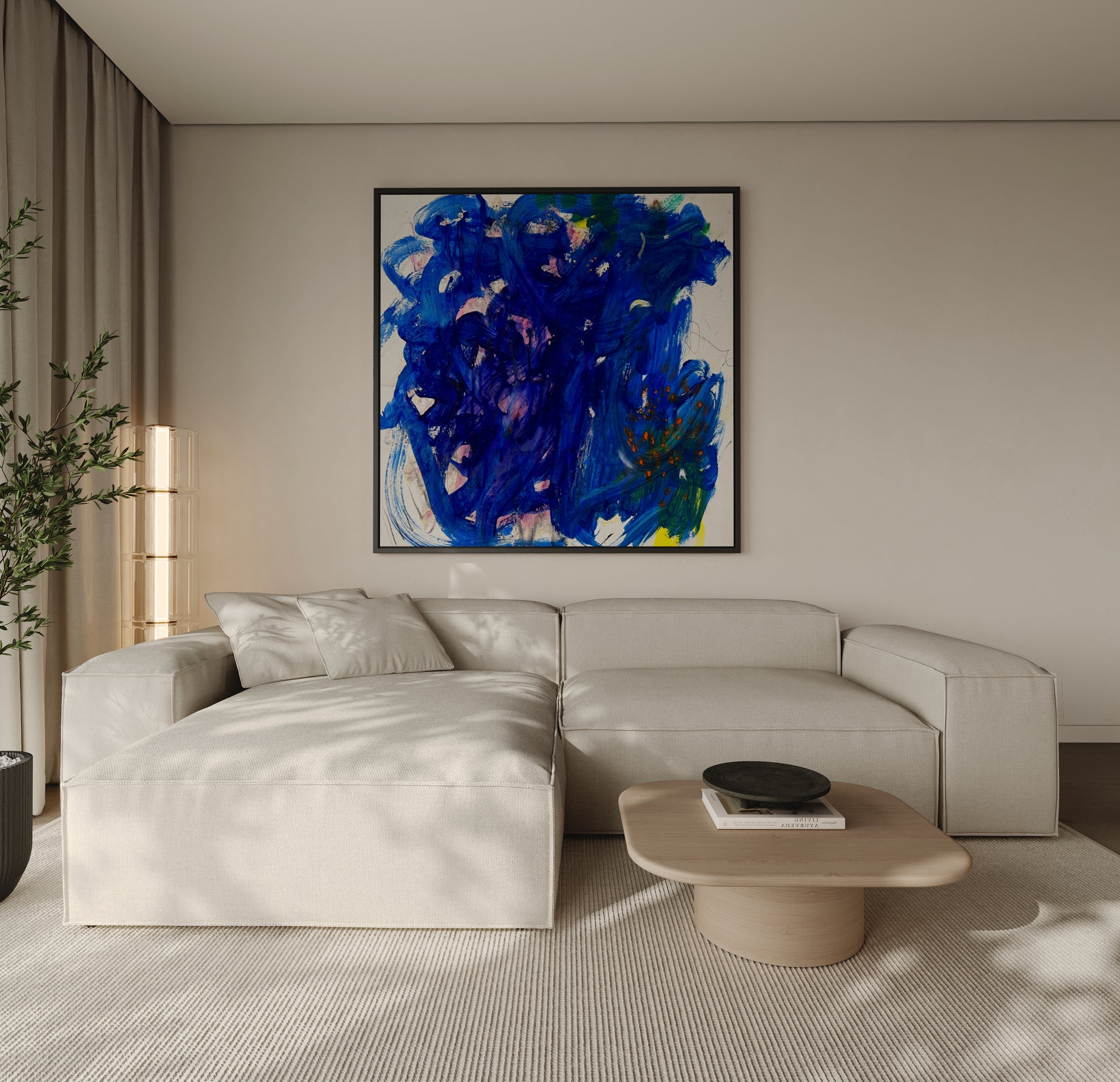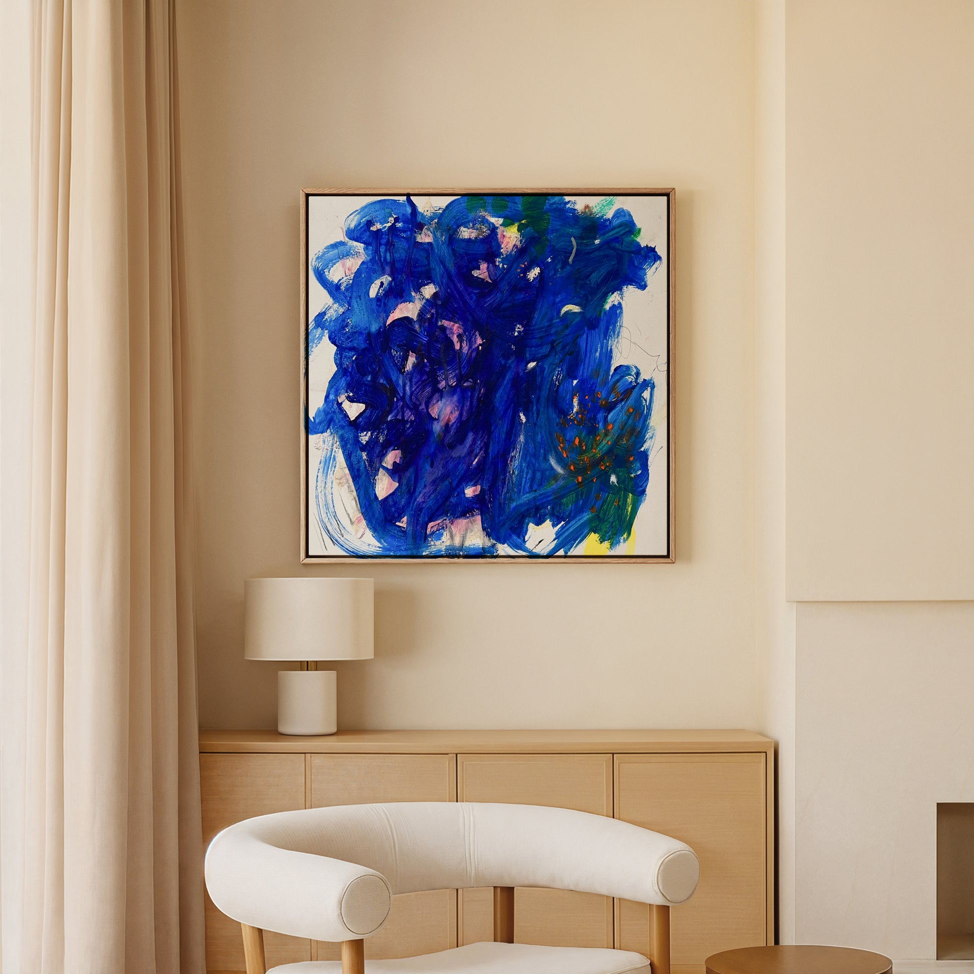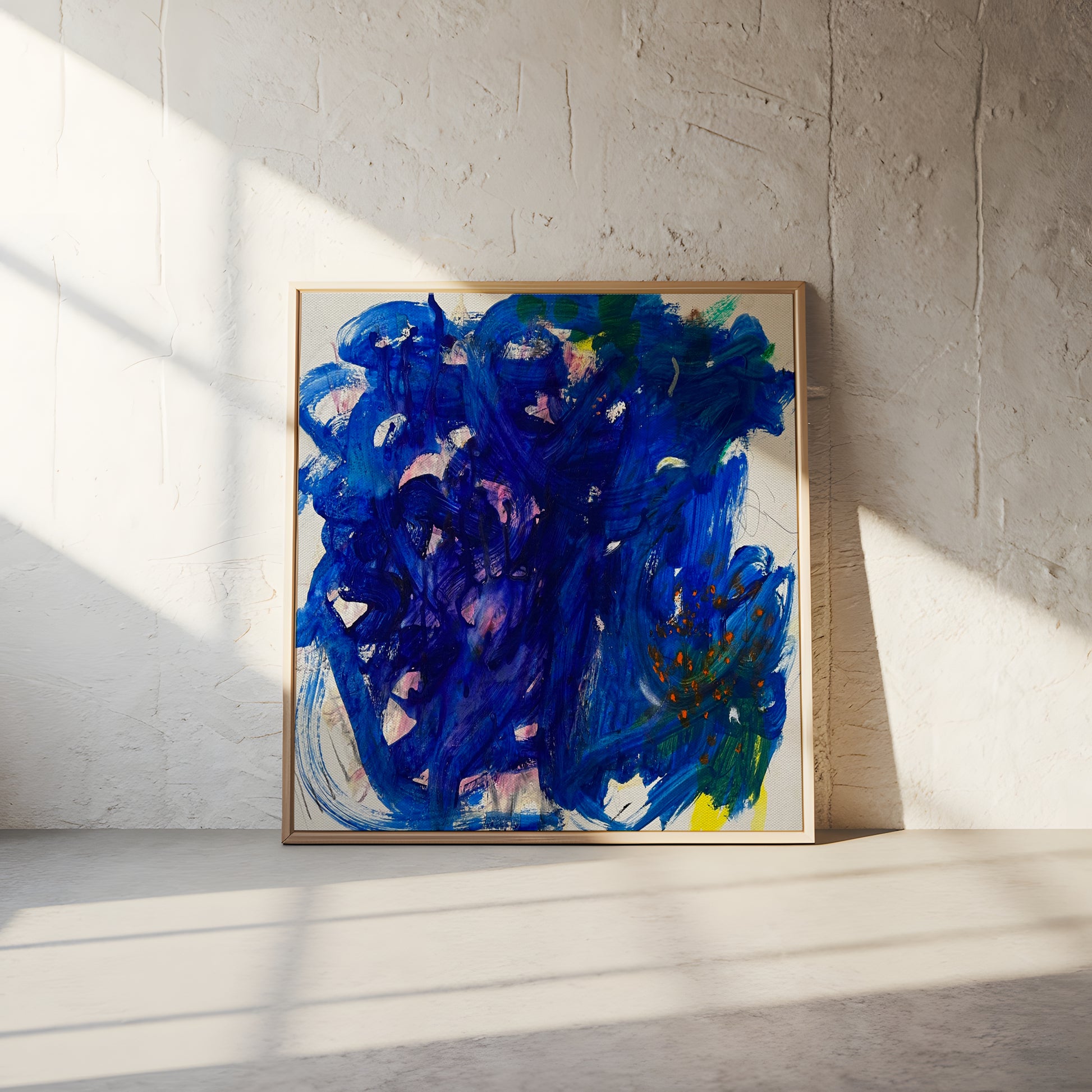A dense, swirling storm of cobalt and midnight, fractured by glimpses of light. This is the color of ancient royalty, sacred relics, and the weight of the cosmos—pressed into movement, wild yet deliberate, like a celestial force bursting into form.