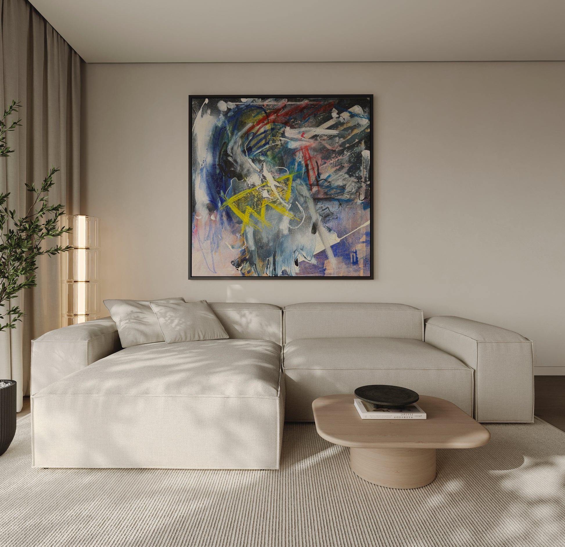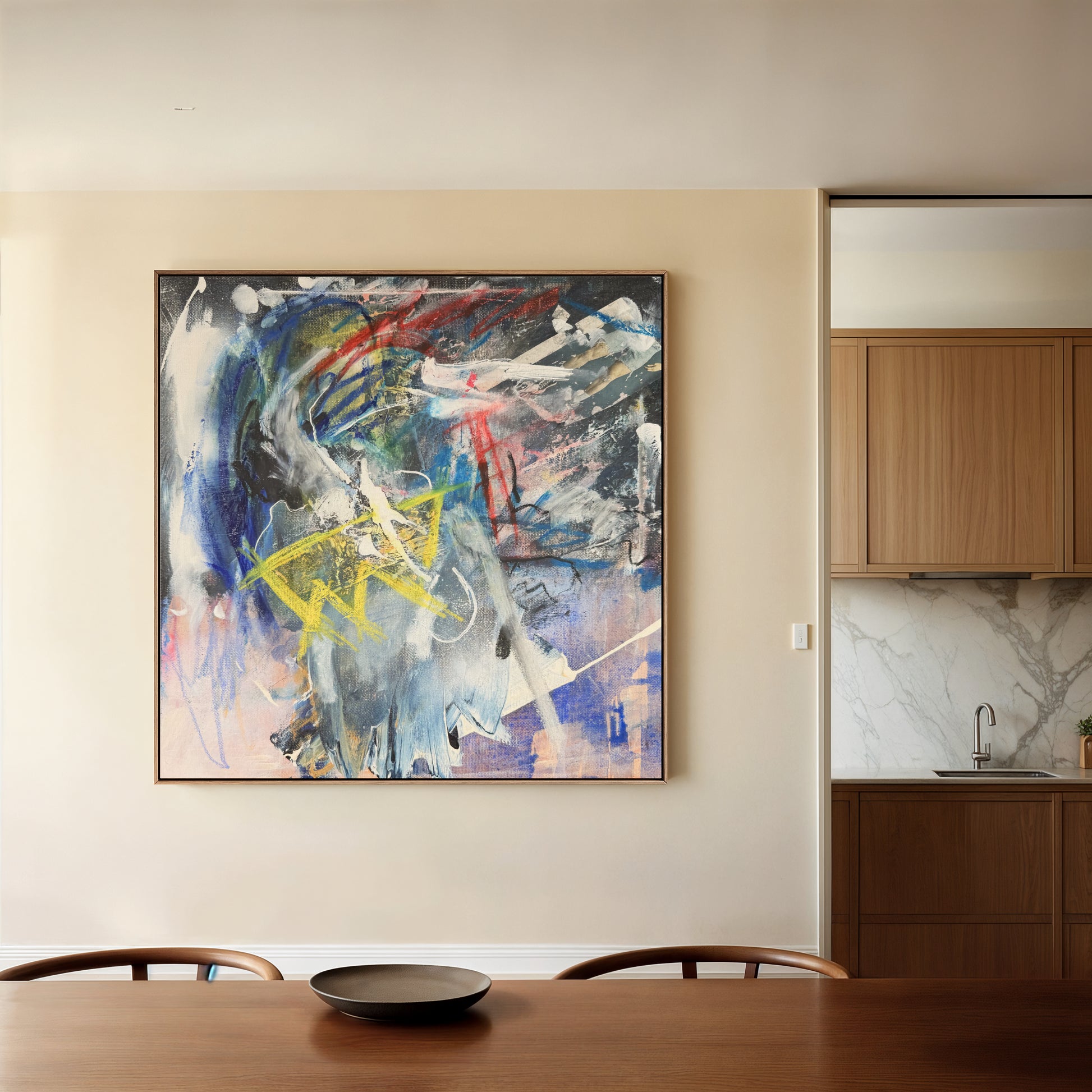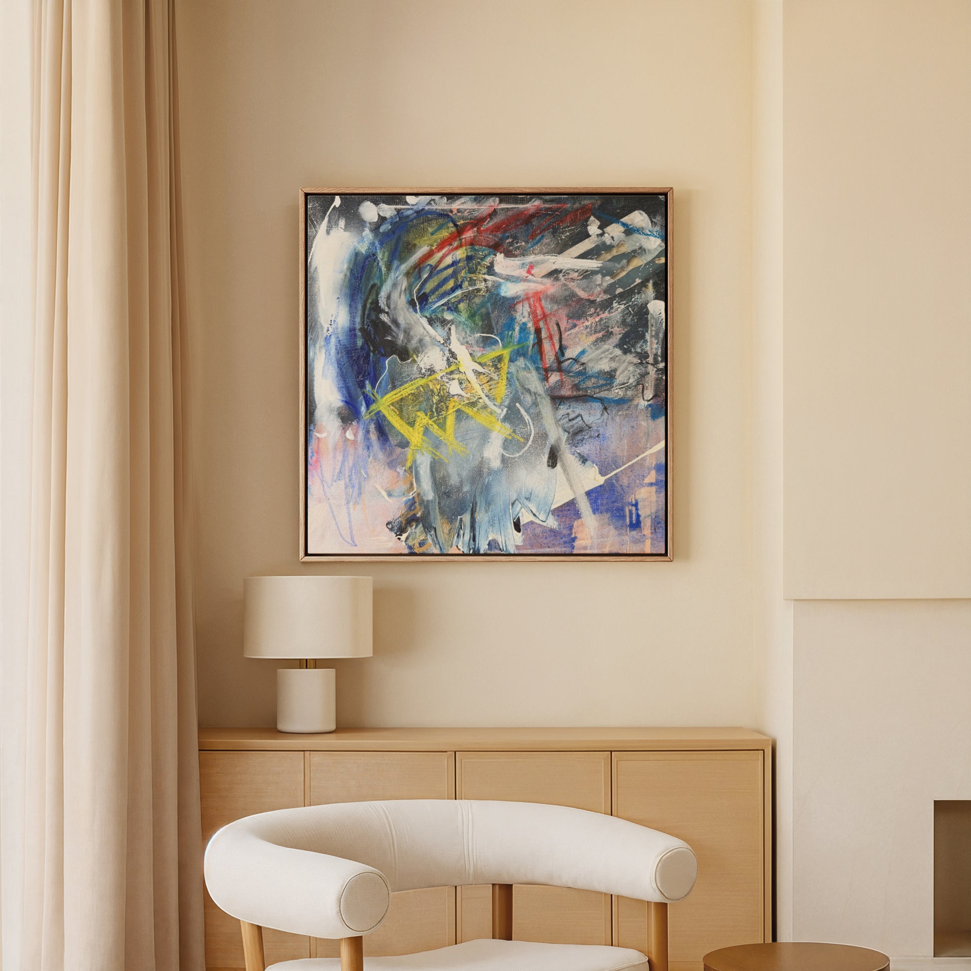 This piece is printed on a thick, archival-grade polycotton canvas, hand-stretched over solid wood stretcher bars and finished in a wood floater frame.