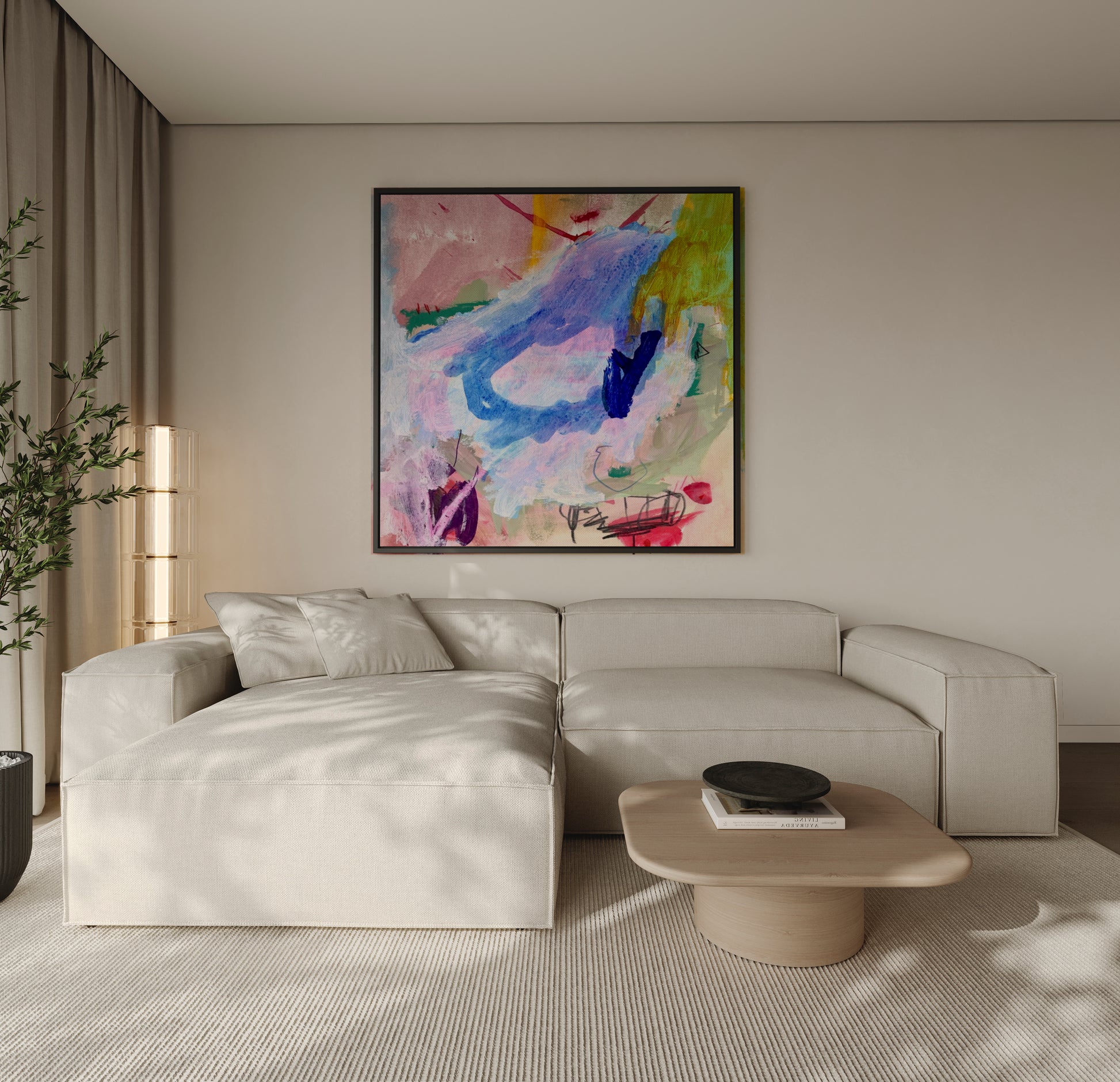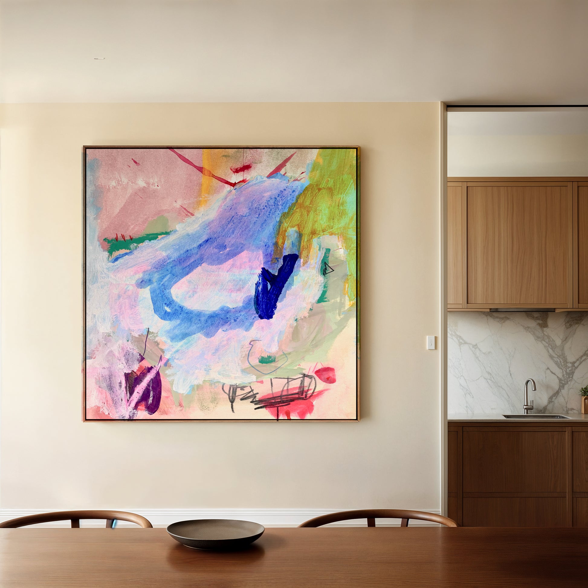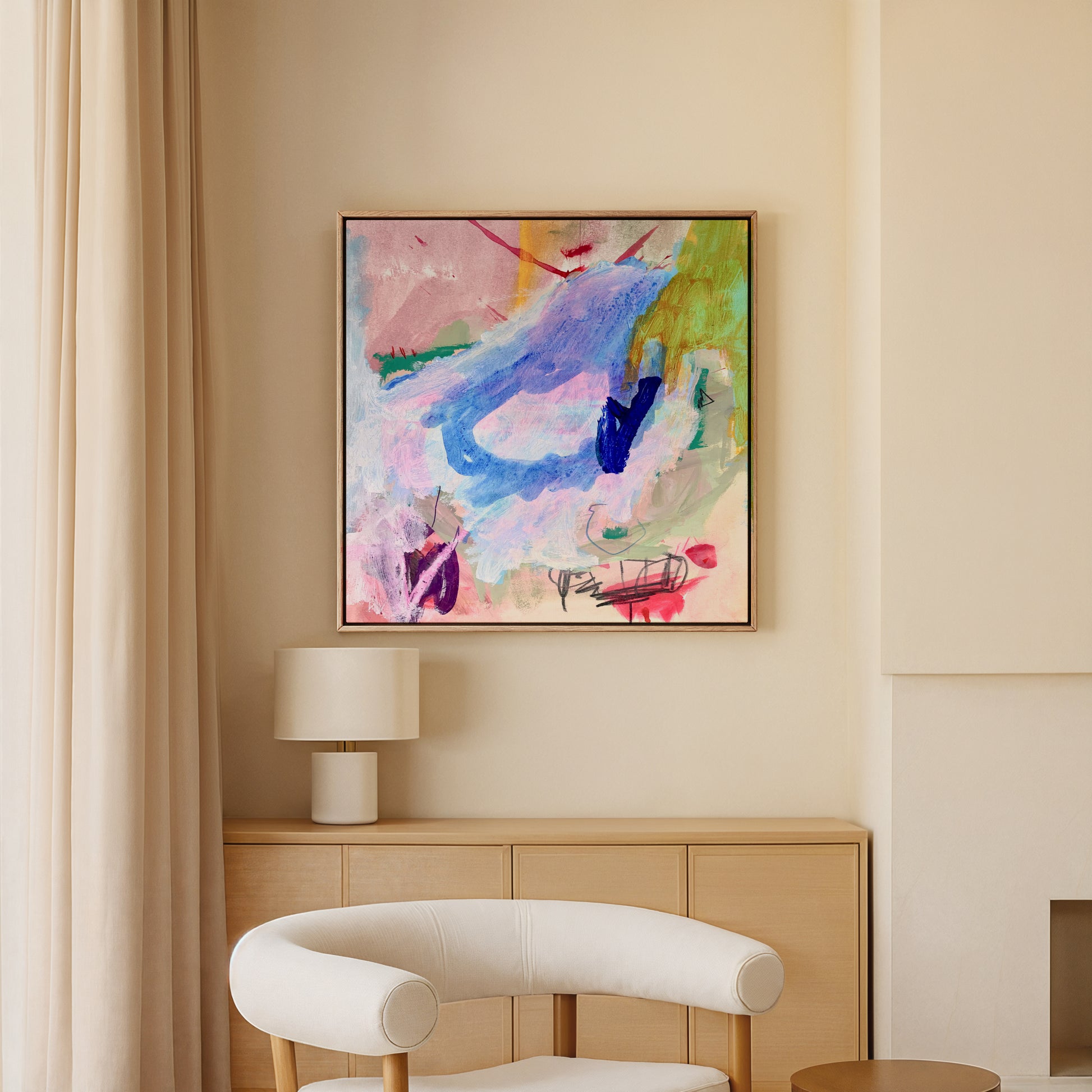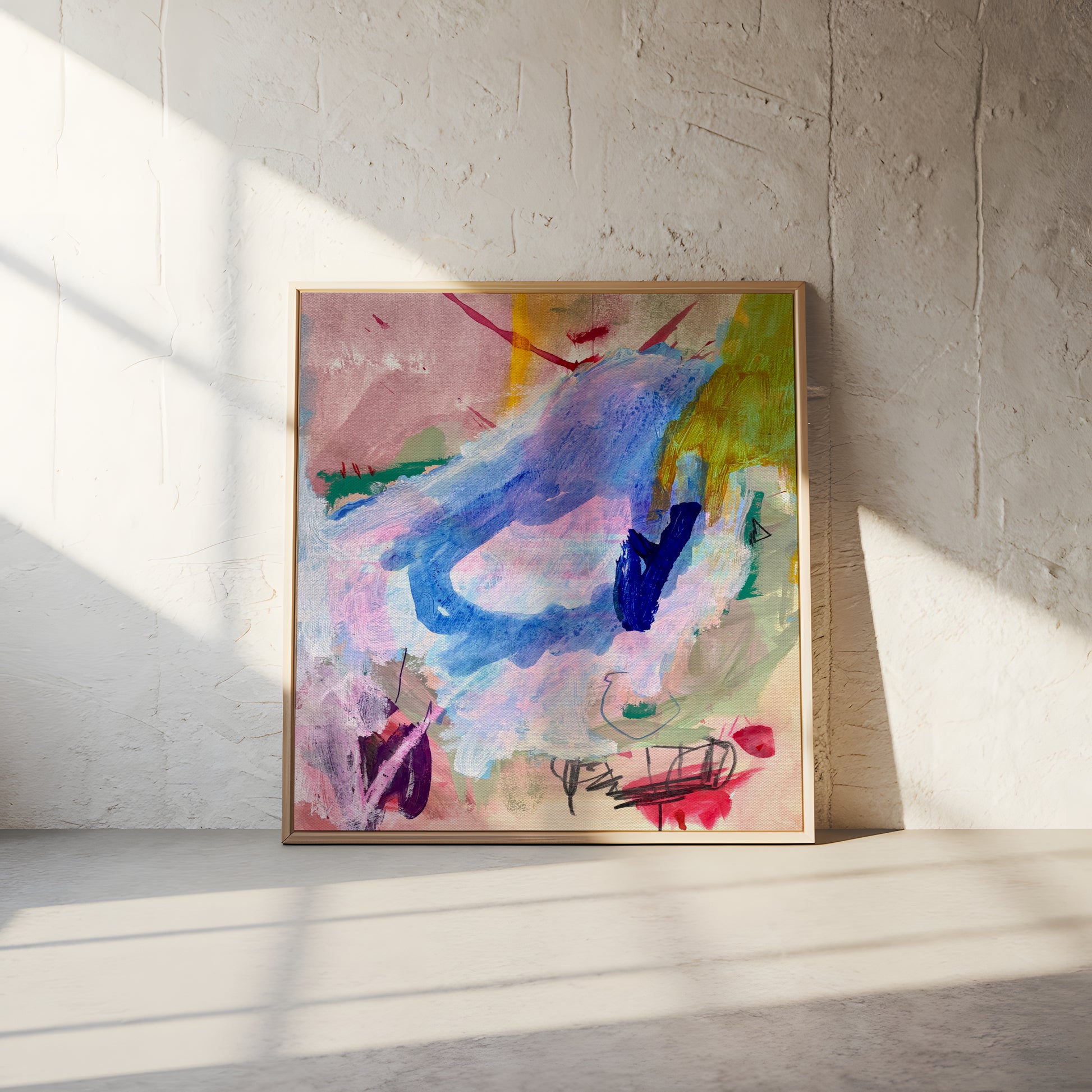 This piece is printed on a thick, archival-grade polycotton canvas, hand-stretched over solid wood stretcher bars and finished in a wood floater frame.