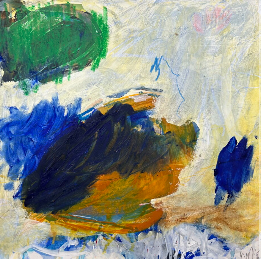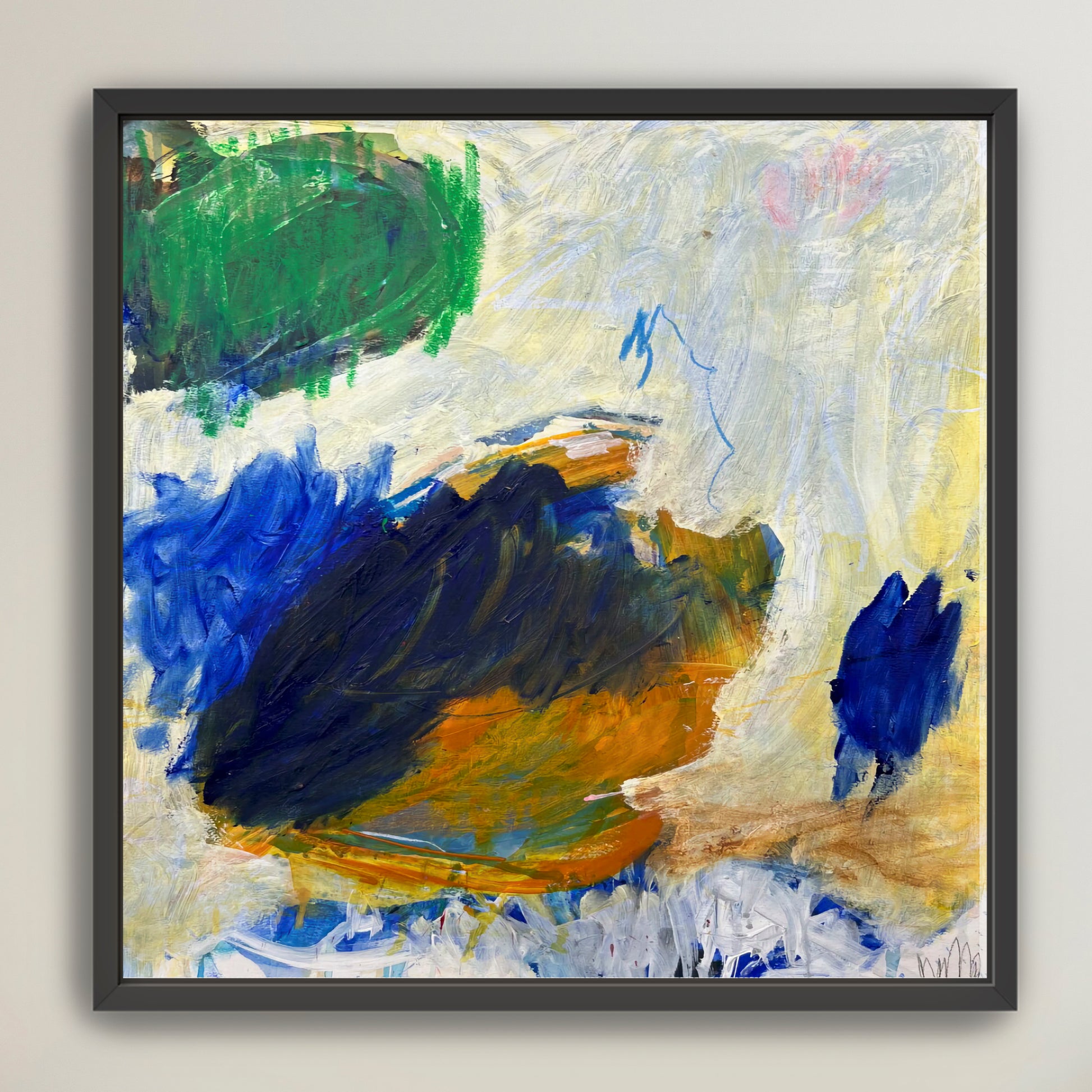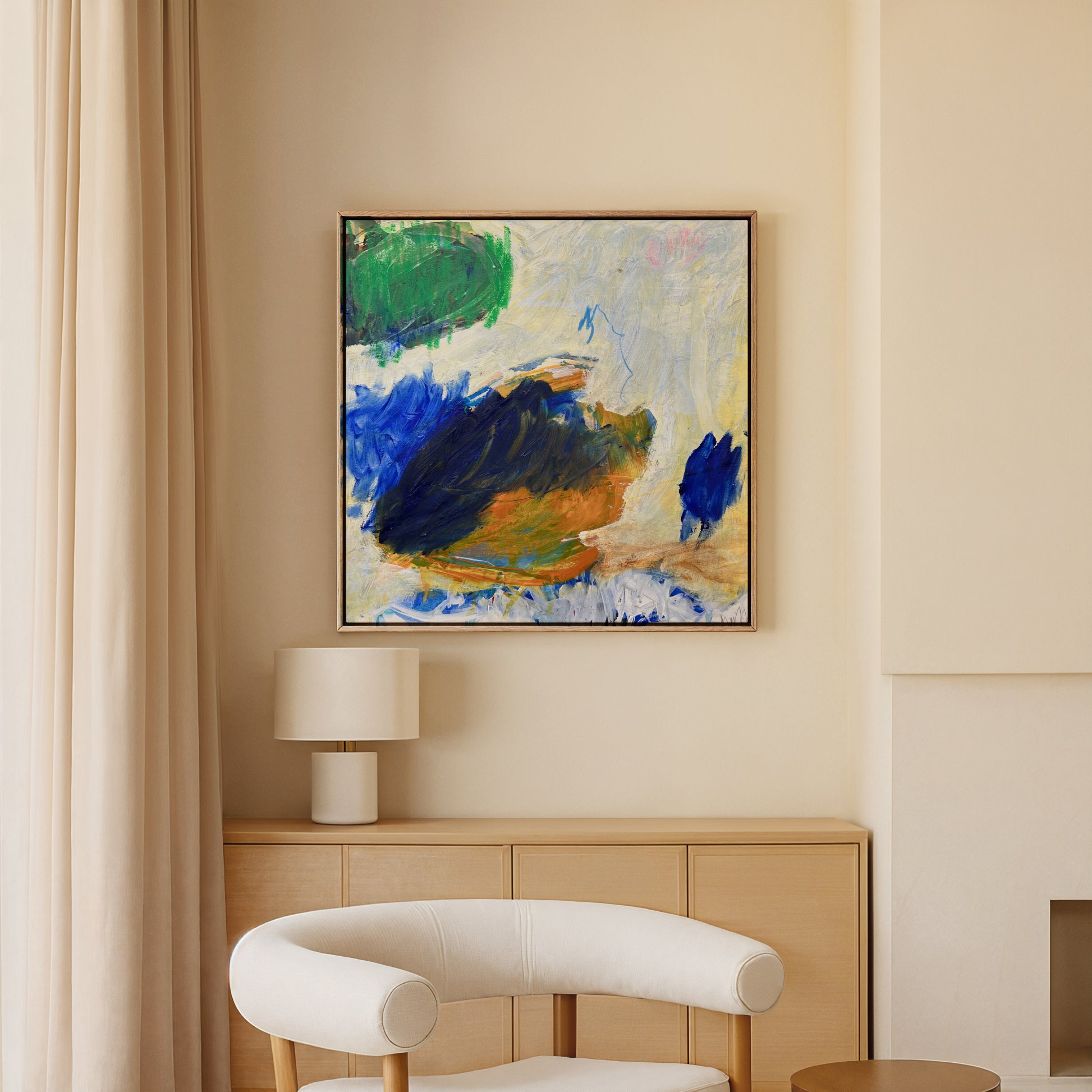 Solitude fills a space with quiet depth and grounded reflection. Broad gestures of blue and earthy ochre create a sense of landscape—vast, open, and inwardly still. The painting carries both weight and calm, offering the room a feeling of spaciousness and emotional resonance, like air after a storm or the pause before a new beginning.