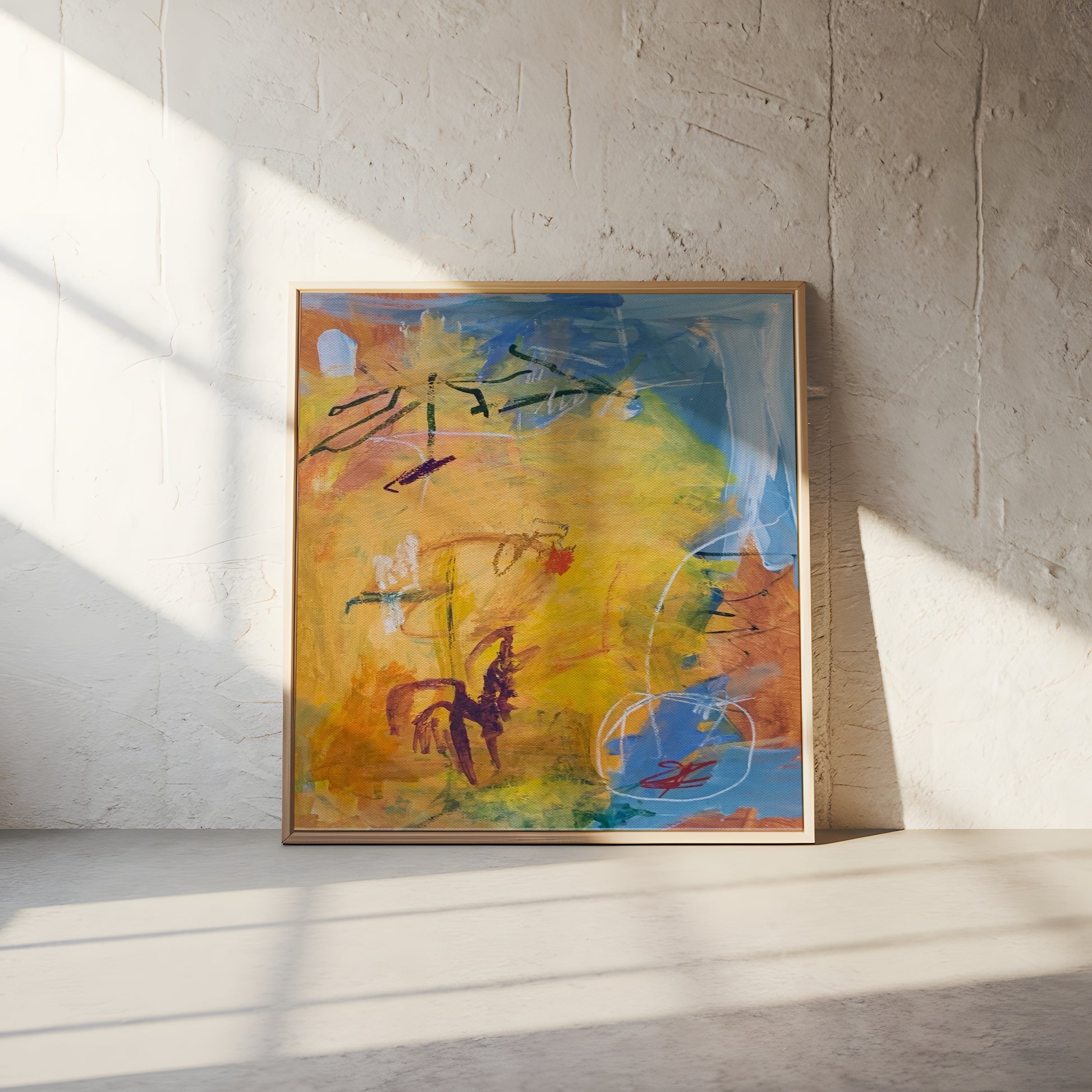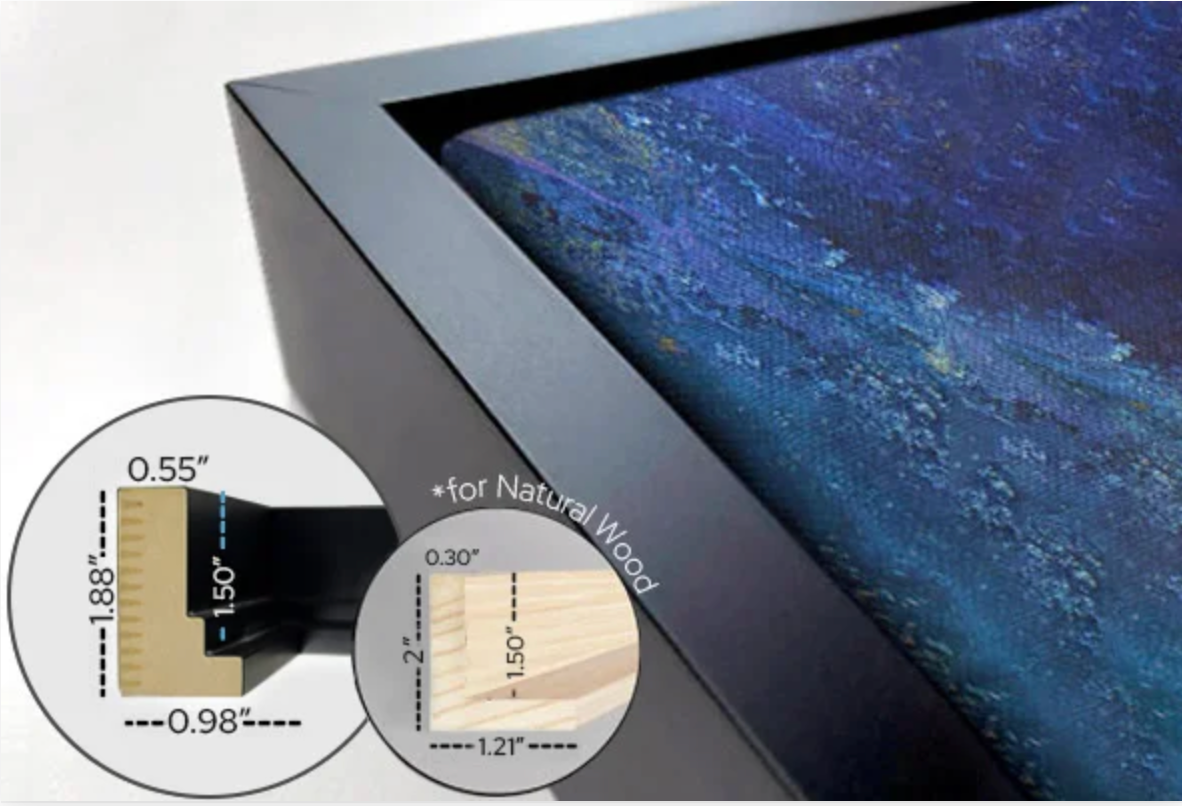 This piece is printed on a thick, archival-grade polycotton canvas, hand-stretched over solid wood stretcher bars and finished in a wood floater frame.