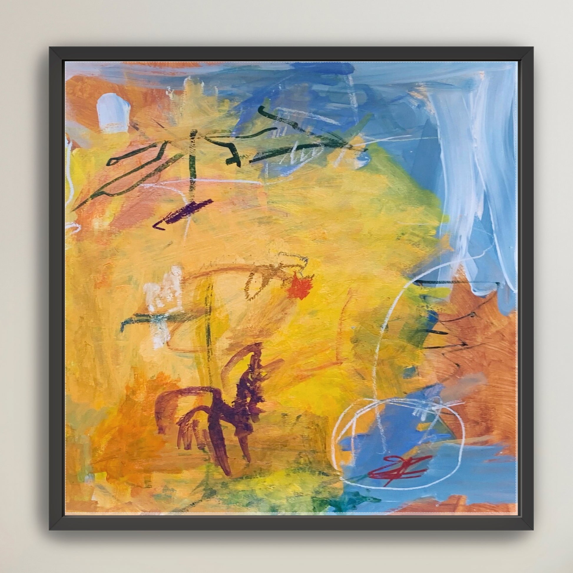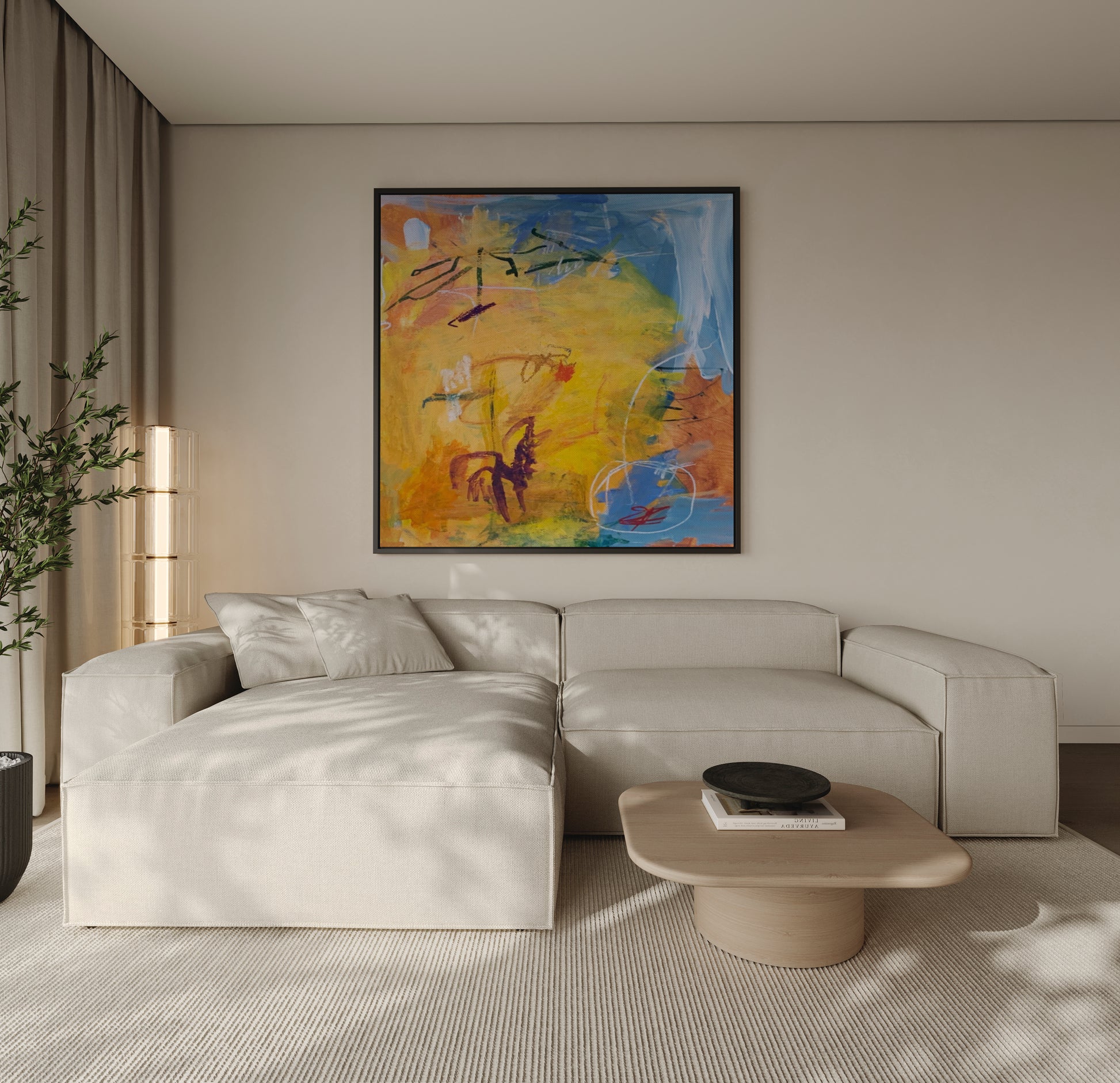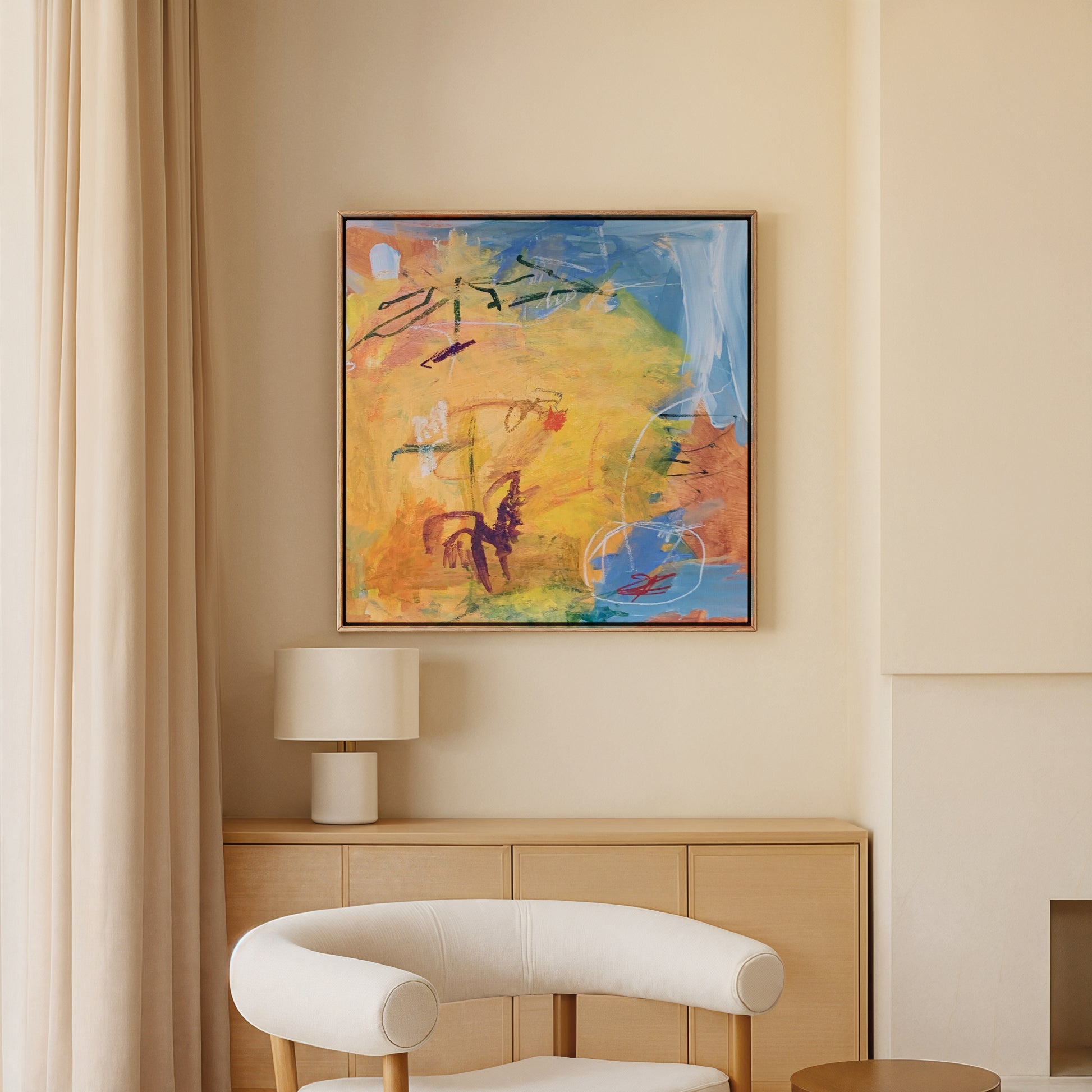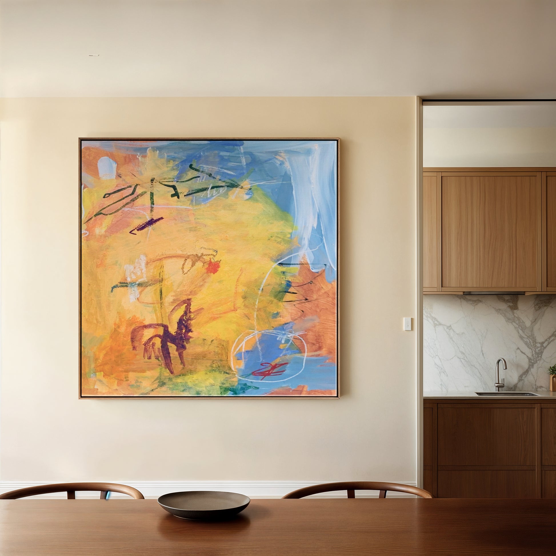 Texture of Dreams brings warmth and quiet motion to a space. Layers of gold, blue, and rust drift in and out of focus, creating the sensation of memory half-remembered. The piece feels alive yet grounded—its colors breathing softly, like a dream trying to stay. It fills the room with energy that’s both contemplative and luminous, inviting reflection and calm curiosity.
