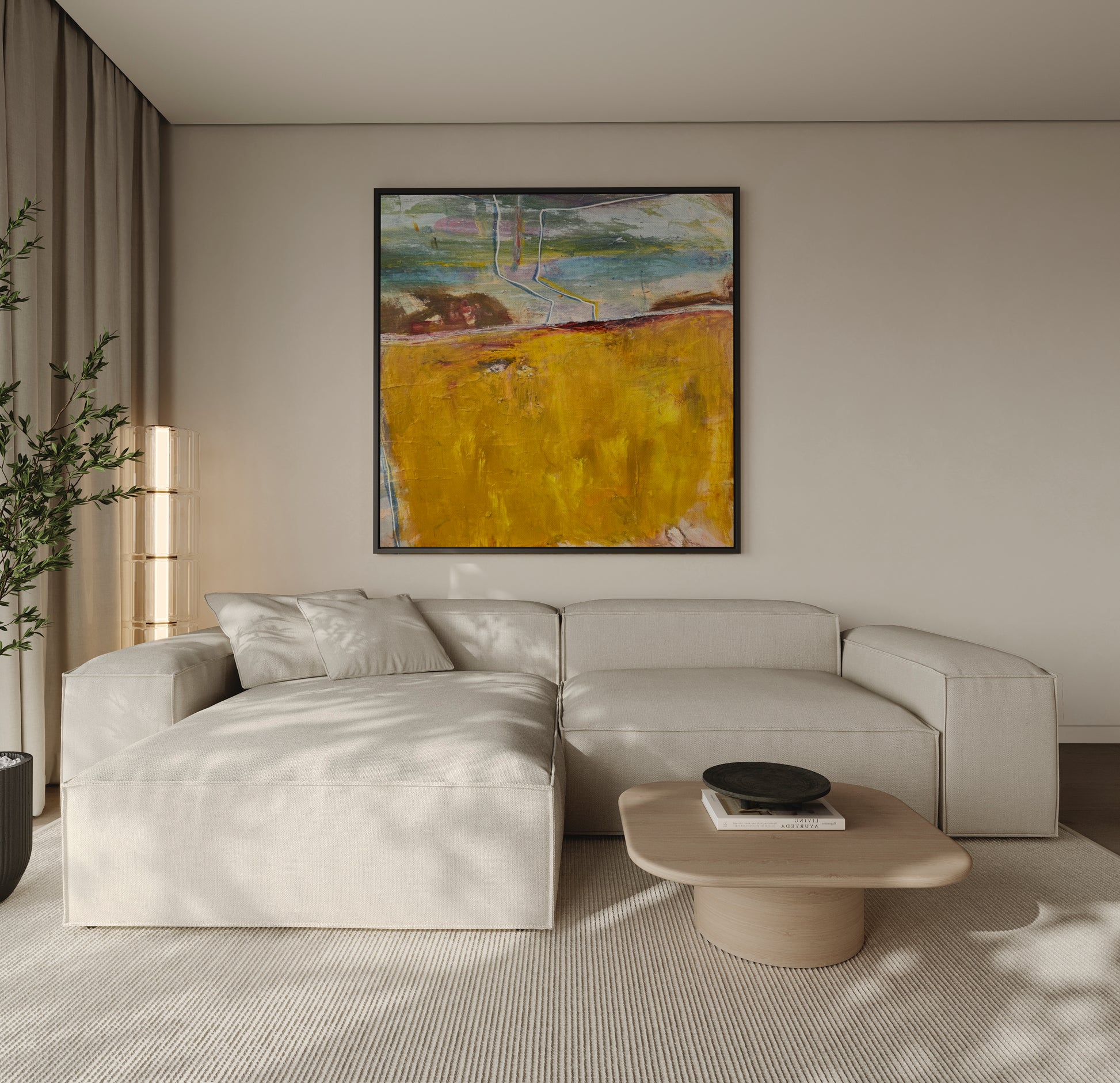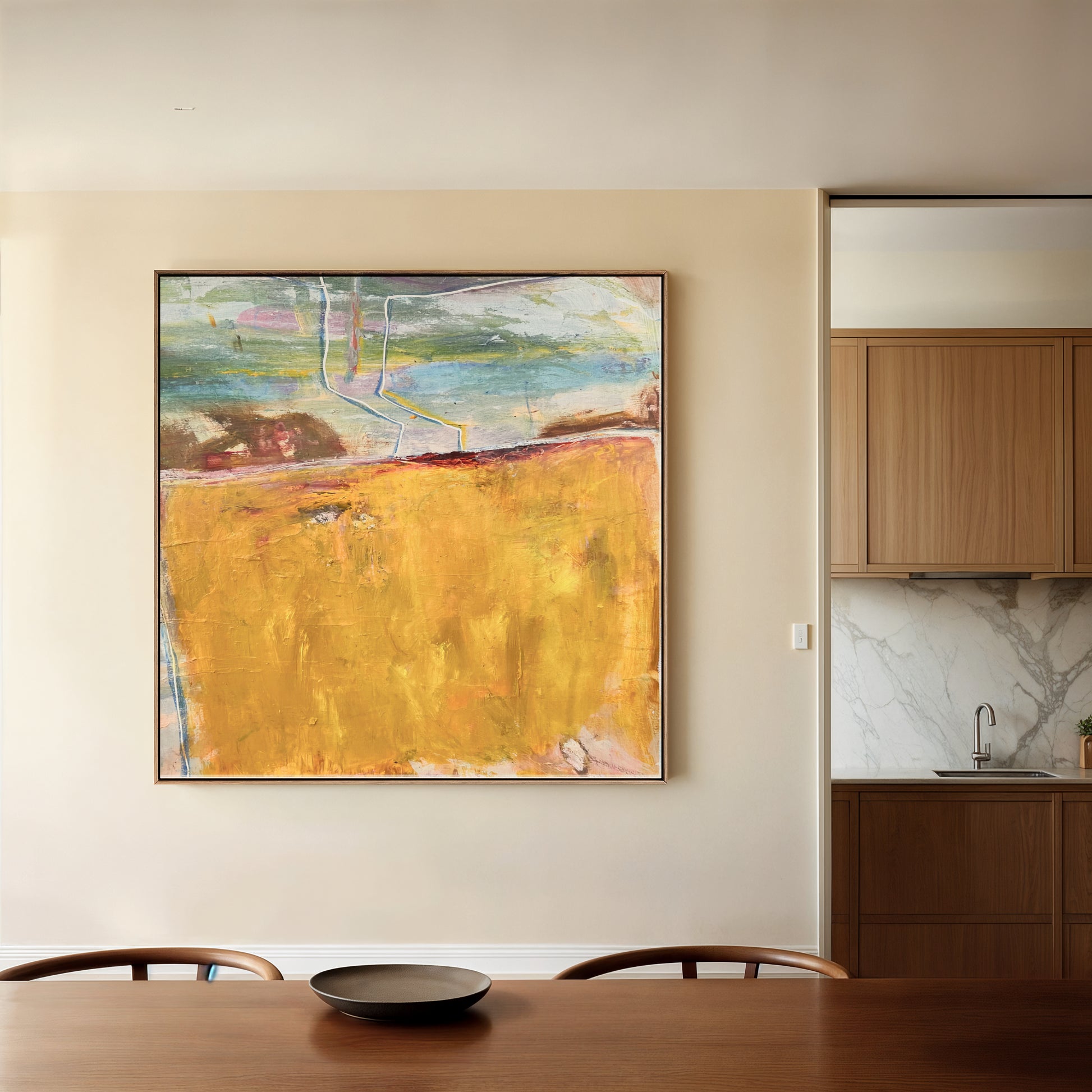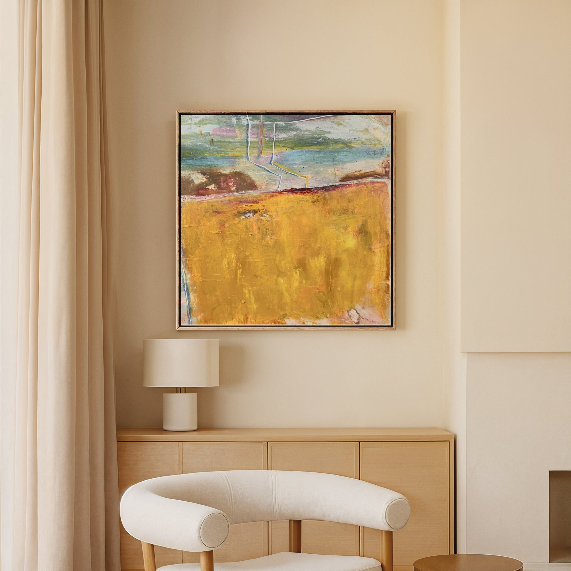 The Sun Always Rises brings warmth and renewal into a space. Golden fields of color meet quiet horizons, creating a sense of grounding and gentle optimism. The work carries both weight and light—inviting stillness while reminding the viewer of the day’s inevitable return. t fills the room with a sense of hope, grounded strength, and luminous calm.