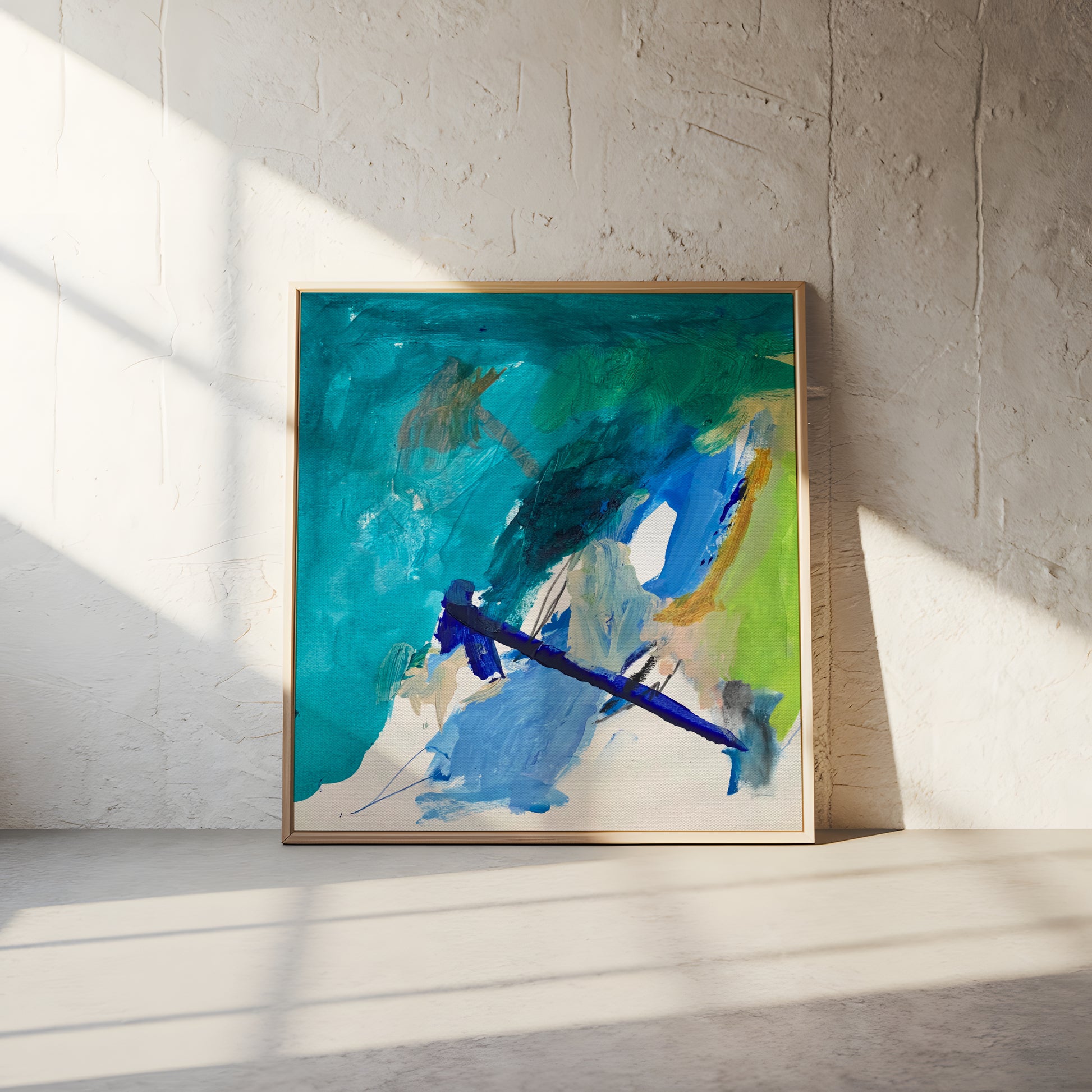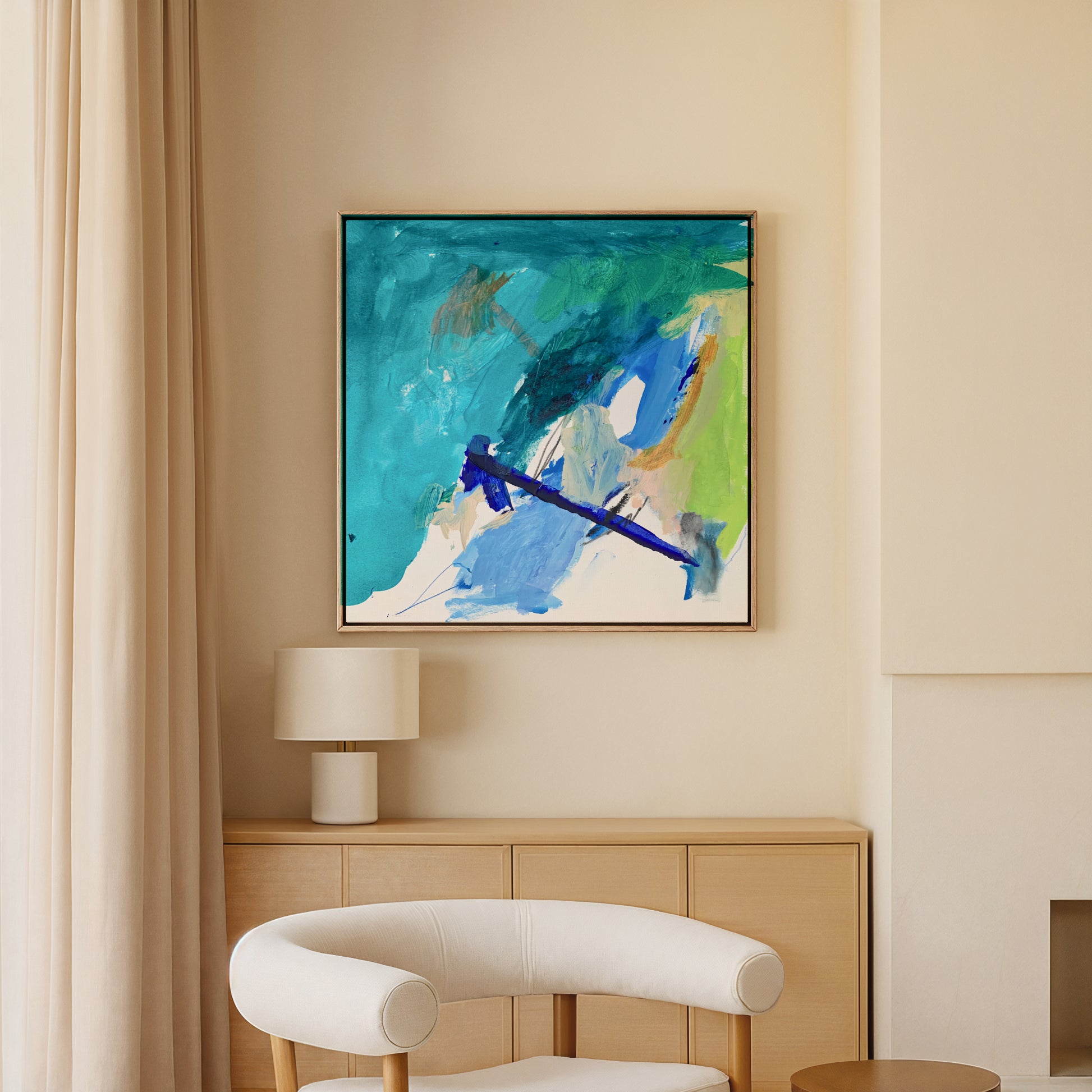 This piece is printed on a thick, archival-grade polycotton canvas, hand-stretched over solid wood stretcher bars and finished in a wood floater frame.